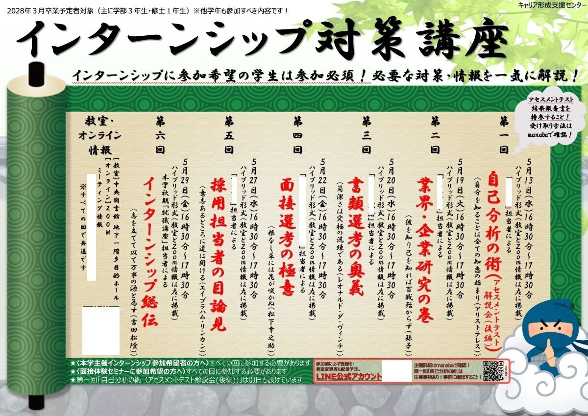 【企画名】インターンシップ対策講座