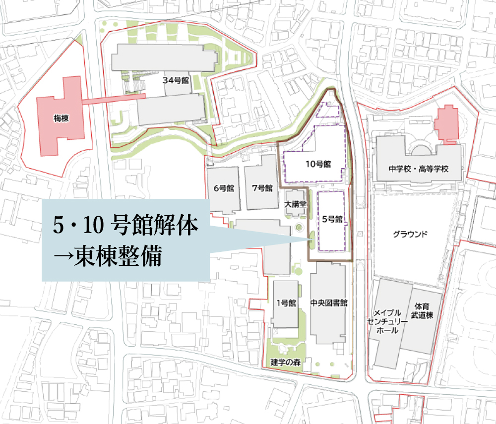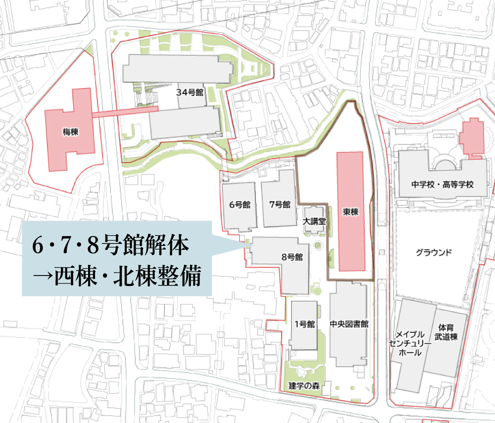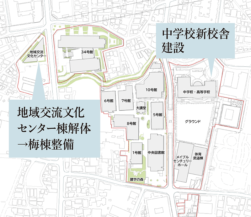 本学の伝統を継承しつつ、次世代をリードする総合的な知の拠点を創出することを趣旨とする本整備事業は、基本計画に基づき、着工・完成に向けて更なる検討を進めてまいります。