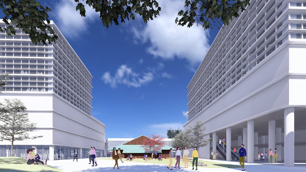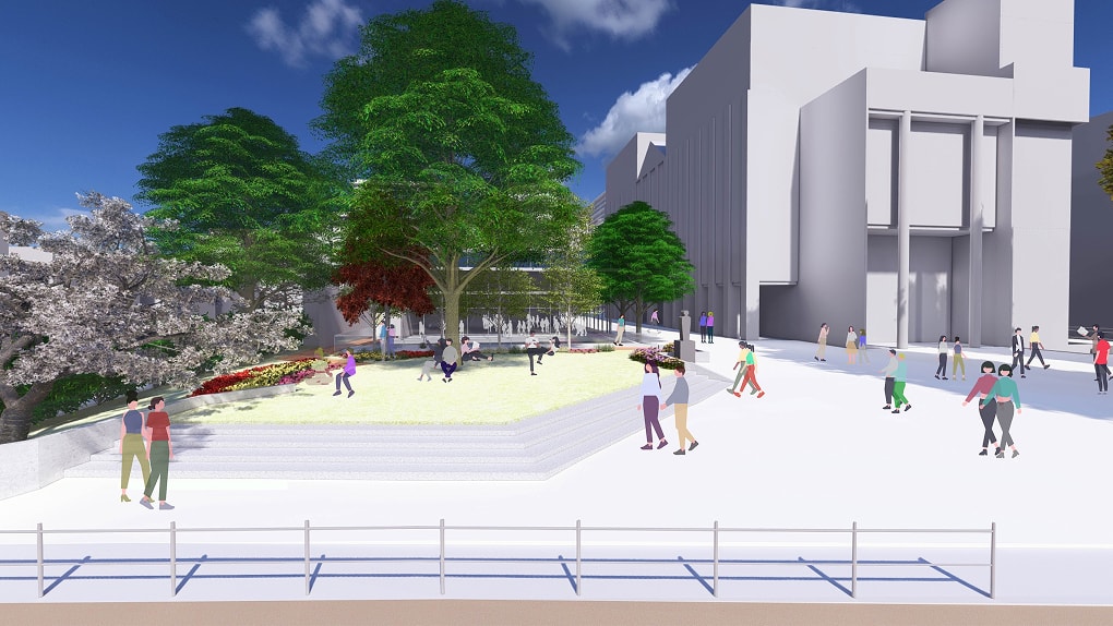 - 国士舘大講堂広場イメージ(東棟ピロティから望む)