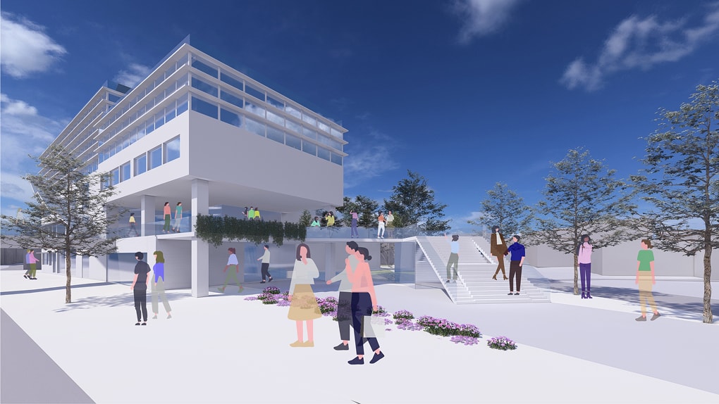 本事業では、老朽化した校舎5棟の建て替えを実施するとともに、キャンパス全体を魅力ある教育研究の場として整備します。