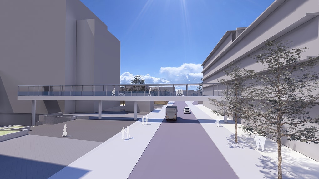 - 梅棟と34号館の校舎間をつなぐ上空通路イメージ
