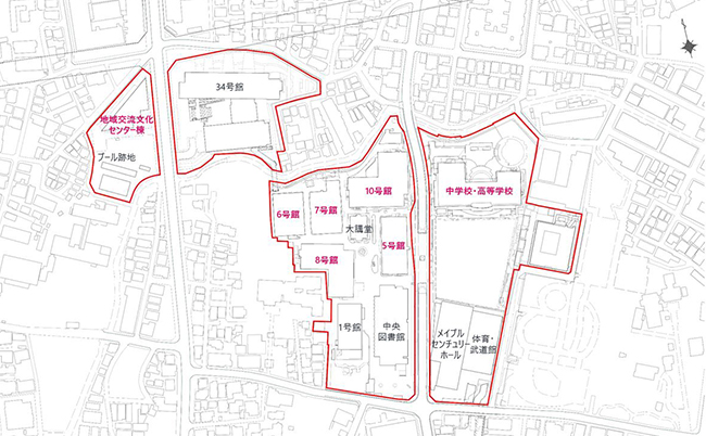 5号館、6号館、7号館、8号館、10号館、地域交流文化センター棟 |