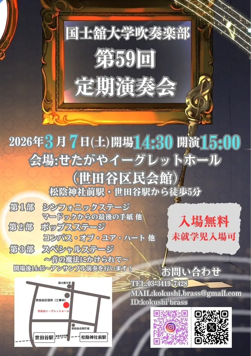 本学吹奏楽部による「第59回定期演奏会」を開催いたします。