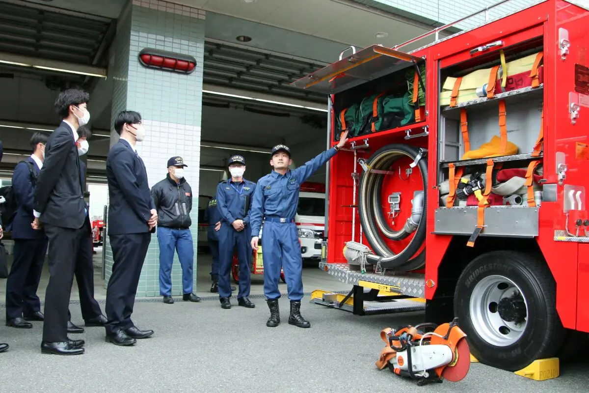 今回の見学では、活動実績や部隊の構成を紹介する映像を通じて理解を深め、災害対応に用いる資機材や数多くの特殊車両を見学し、ハイパーレスキュー隊の活動を臨場感をもって学ぶことができました。また、消防服の着用や特殊災害対策車への搭乗といった体験を通して、現場のスケールや装備の工夫を体感しました。さらに、普段は見る機会の少ない指令室も解説を受けながら見学し、広大な管轄と、災害に即応するための準備・連携の緻密さを目の当たりにし、学びの多い見学となりました。