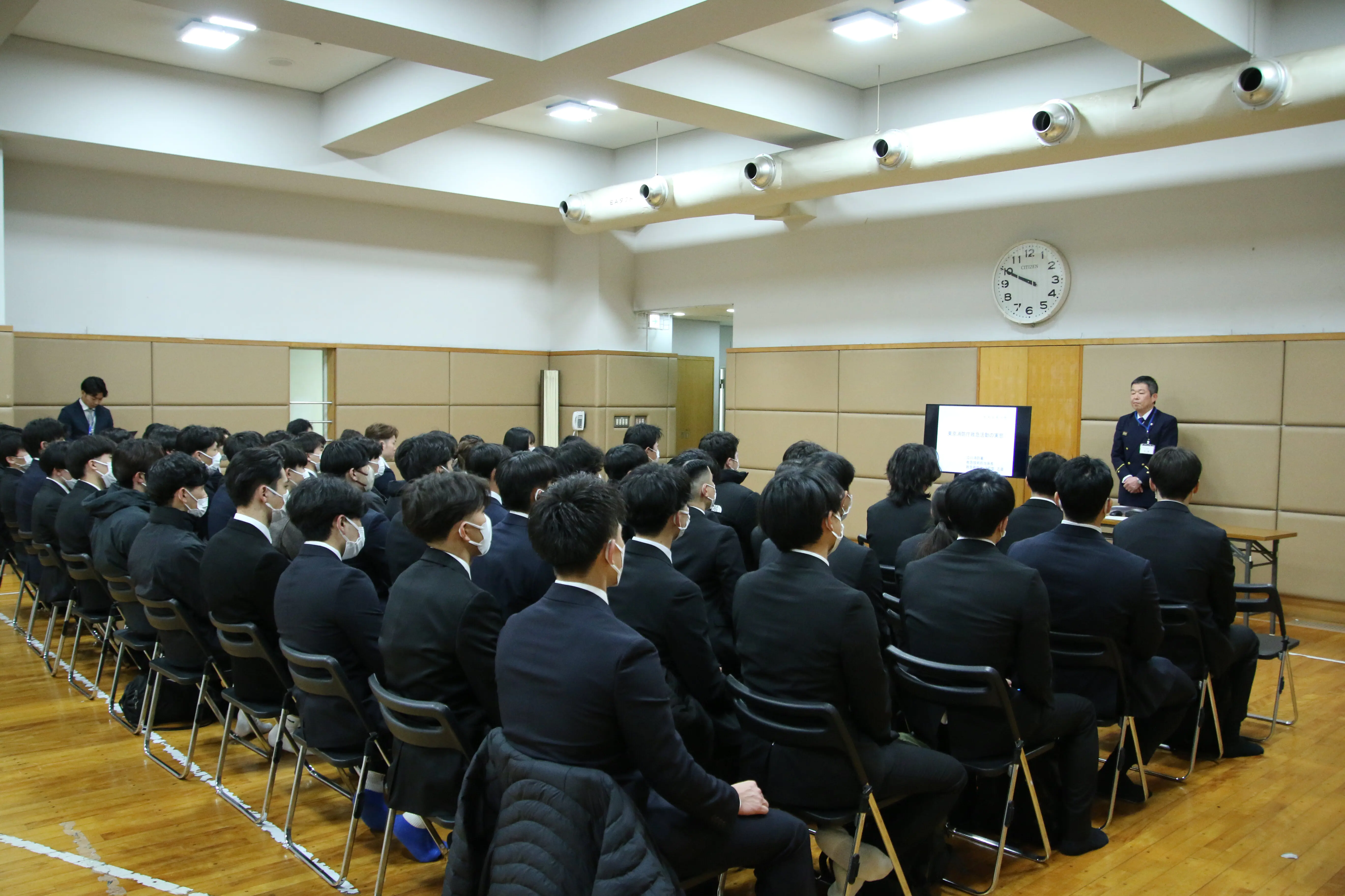 学生からは、「自分が目指している場所のすごさを肌で感じることができた」「普段は見られない通信指令室を見学でき、大変貴重だった。119番通報がどこにつながり、その後どのように対応が進むのかを目の当たりにし、自分たちの安全がこのように守られているのだと思うと身の引き締まる思いがした」などの感想が聞かれました。