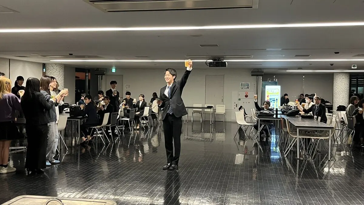 大会後には、34号館10階スカイラウンジで立食パーティー形式の懇親会を行いました。懇親会の参加は3・4年生のみでしたが、おいしい料理を食べながら親睦を深めました。