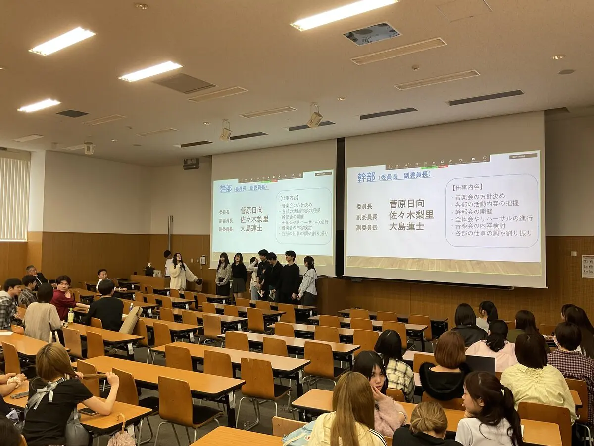 2026.04.27 教育学会総会を行いました 4月11日、教育学科の教育学会総会が世田谷キャンパス34号館のB301教室で実施され、新入生、在学生らが参加しました。総会では、今年度の活動計画や予算案が示され、学問的な活動に加えて、教員採用試験対策の特別講座を実施することが議決されました。最後に、教育学科の行事である「音楽会」の準備がスタートしました。音楽会はすべて学生主体で進められます。年度始めであるこの日は,音楽会の運営などについて検討しました。