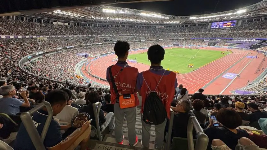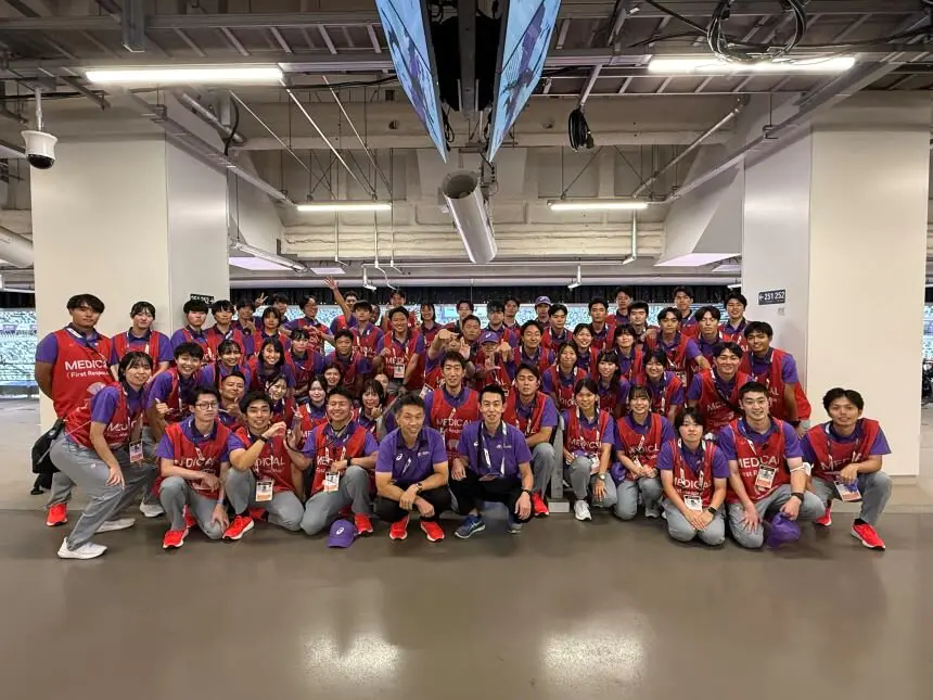 東京2025世界陸上が、9月13~21日を会期に東京・国立競技場で開催され、体育学部スポーツ医科学科および大学院救急システム研究科の学生、教員からなる総勢67人が、計7日間にわたり観客救護のボランティアとして活動しました。延べ400人を超える学生らが、最大5万人超の来場者が訪れる国際大会の現場で、救急救命の専門職としての知見を深めました。