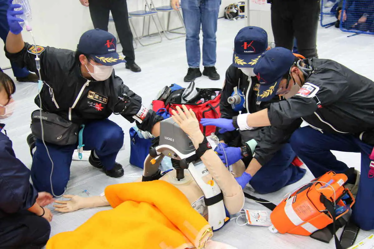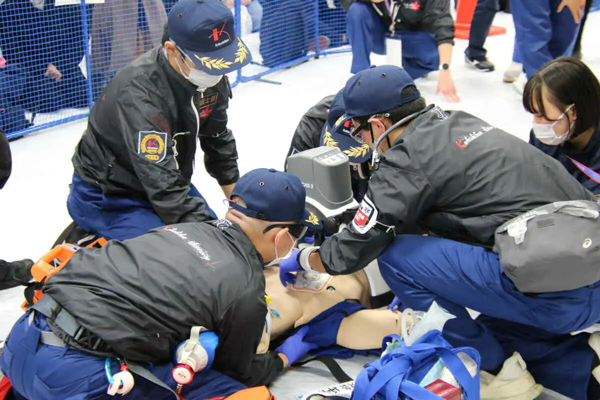 今大会には、救急救命士を養成する大学・専門学校などから11チームが参加し、外傷、CPA、内因性、外因性、国家試験問題、救急搬送中のCPRの全6項目の評価で順位を争いました。