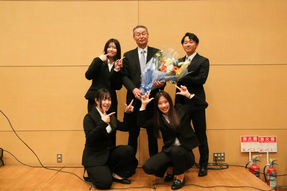 講義を終えた北神教授には、参加者からの盛大な拍手とともに、学生からは花束や色紙が贈られ、記念撮影を行い、最終講義が締めくくられました。
