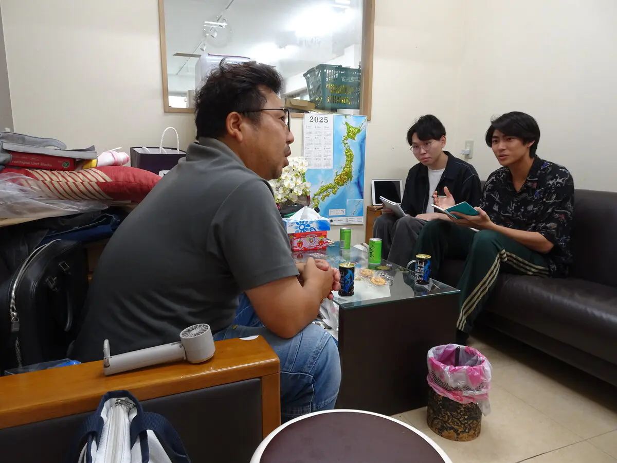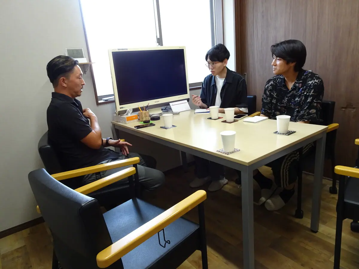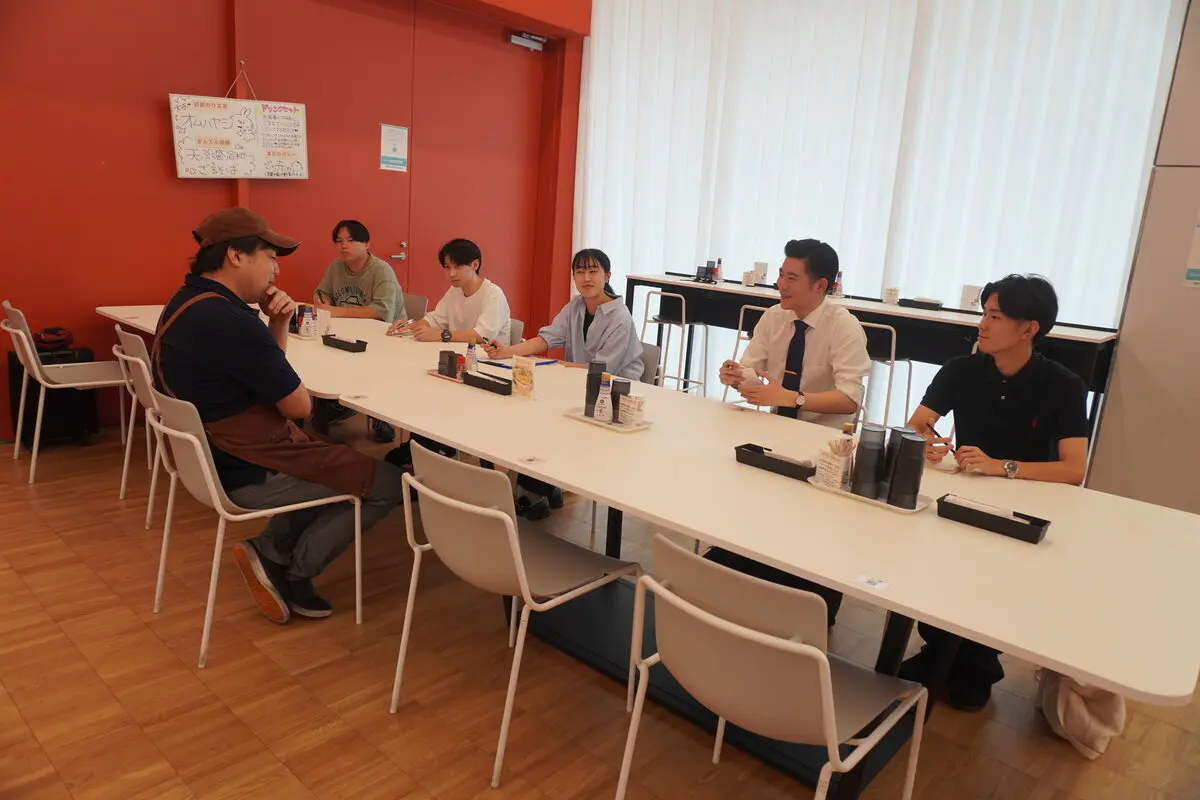 定例会に続き、四つのグループに分かれ、商工会青年部員と本学学生との座談会が実施されました。参加した学生たちは、今回のテーマである「地方自治と地場産業」を意識しつつ、商工会青年部員に事業内容やその環境、八潮市の現状などについて積極的に質問していました。一方で商工会青年部員は、学生の質問に対して丁寧に分かりやすく、気さくに答えるとともに、商工会青年部員から学生に質問をする場面も多く見られるなど交流を深めました。座談会後には菊池優太商工会青年部長が「普段気付かないことにも気付くことができた」と述べつつ、大会での発表に関して学生らに期待と激励の言葉を送りました。
