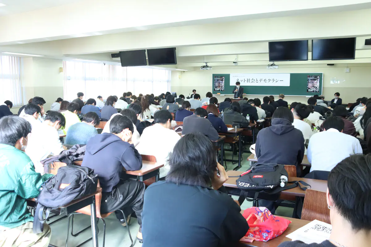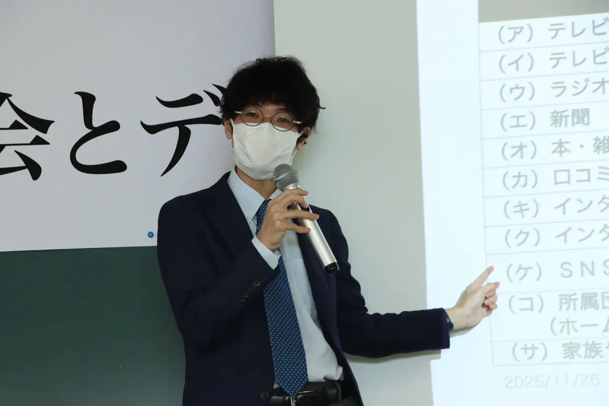 11月26日、世田谷キャンパス6号館6403教室で政治研究所シンポジウム「ネット社会とデモクラシー」が開催されました。当日は政治行政学科の山田亮介准教授、経済学科の加藤将貴准教授および政治行政学科の桑名祐樹講師がパネリストとして登壇し、各専門分野から「ネット社会とデモクラシー」という共通テーマについての意見や見解を述べました。