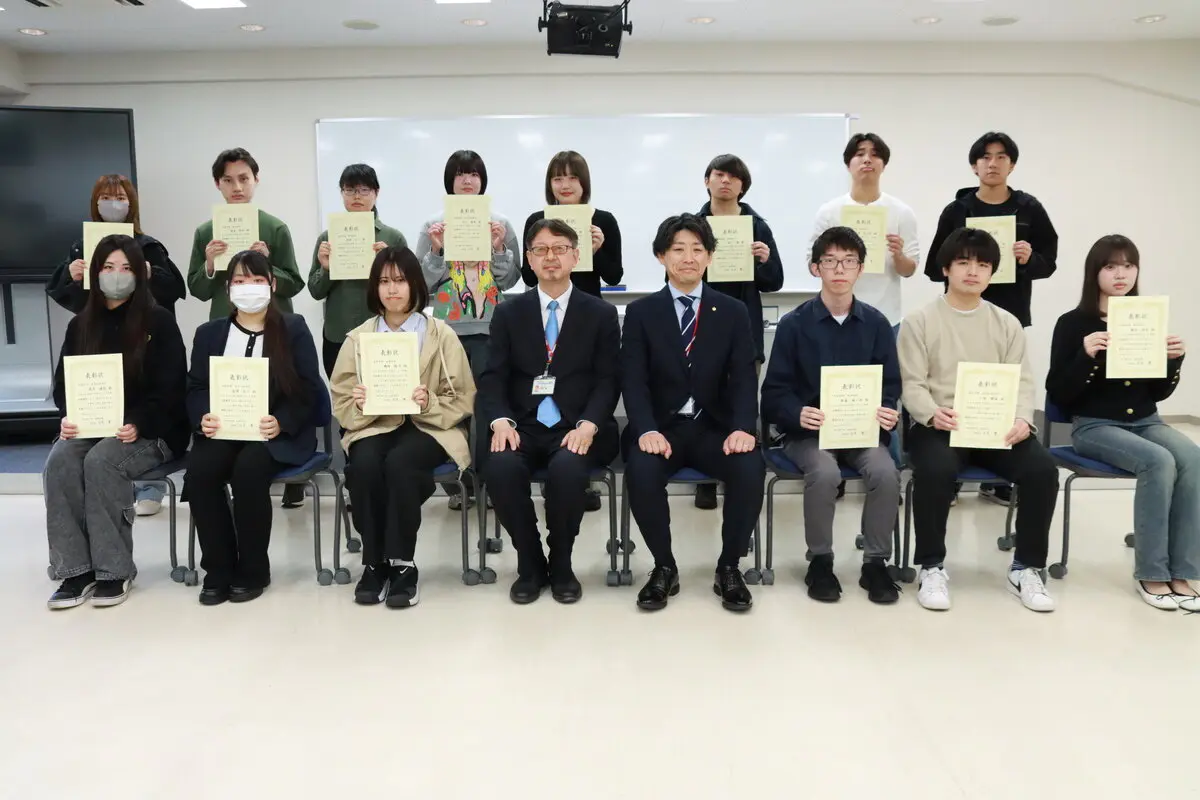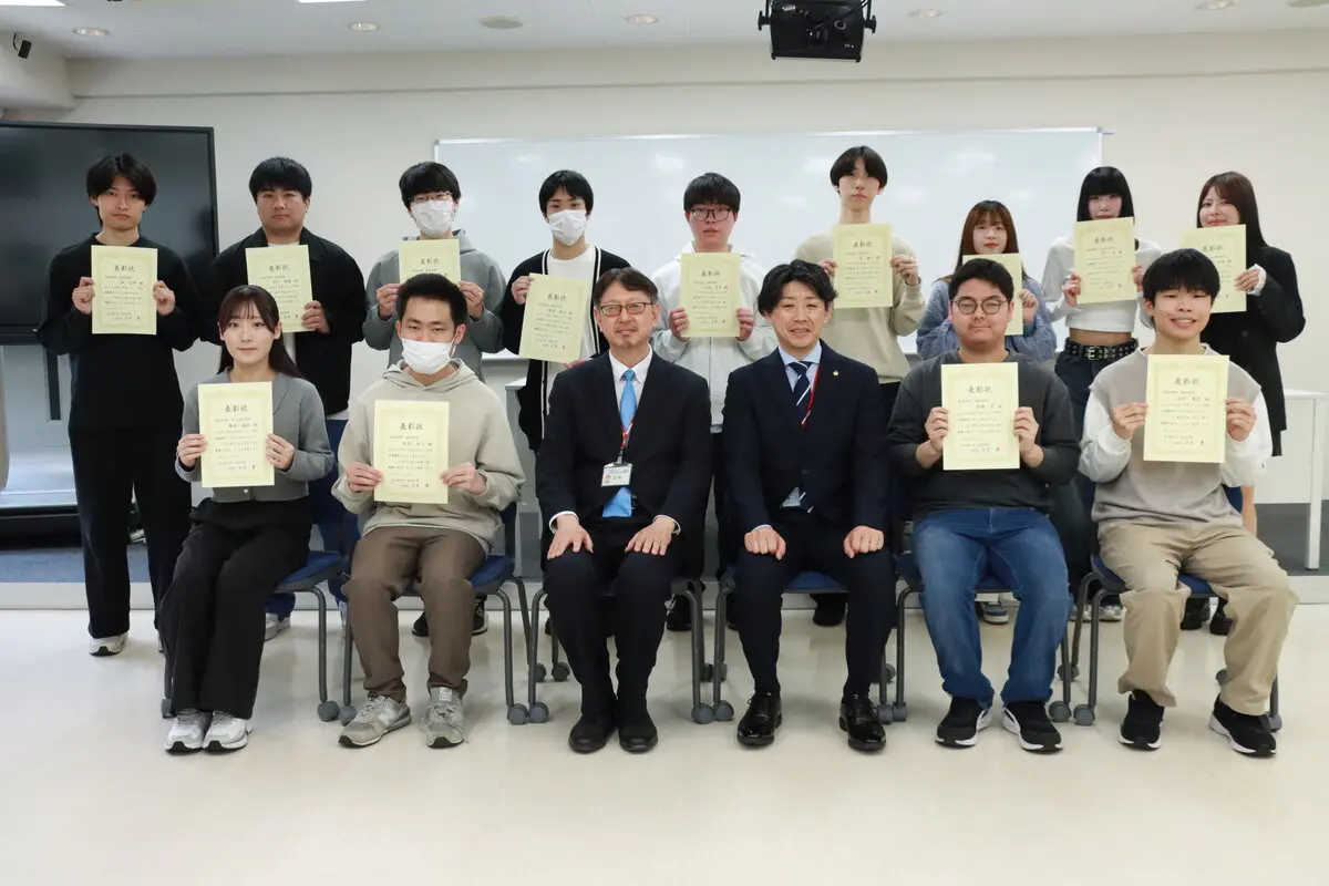 政経学部は、令和7年度GPA成績優秀者への表彰式を4月14日、5号館301教室で実施しました。対象者は、2年生21人、3年生15人、4年生22人の計58人。