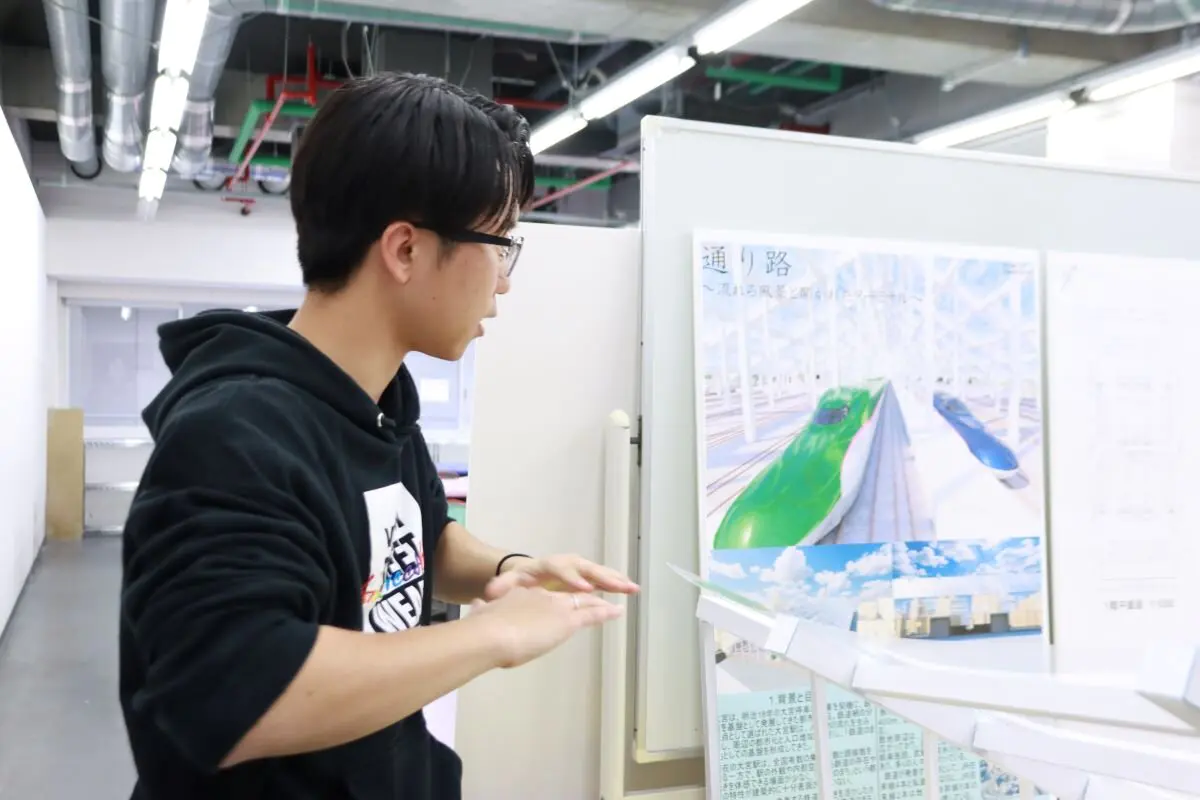 参加した学生からは、「製作期間中、多くの時間を研究室で過ごし、仲間と切磋琢磨しながら充実した時間を過ごせた」「地元を敷地として計画を進め、歴史などを詳しく調べたことで、地元愛が一層強くなった。今後は外部の展覧会への出展を予定しており、先生方からアドバイスをいただきながら、作品をさらにブラッシュアップしていきたい」などの声が聞かれました。