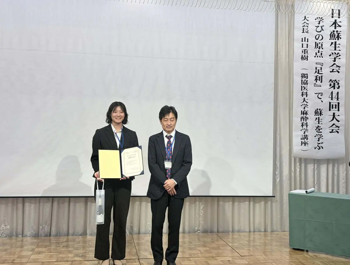 救急システム研究科修士課程1年の阿部和さんが、11月21日~23日にかけて行われた日本蘇生学会第44回大会において最優秀演題賞を受賞しました。