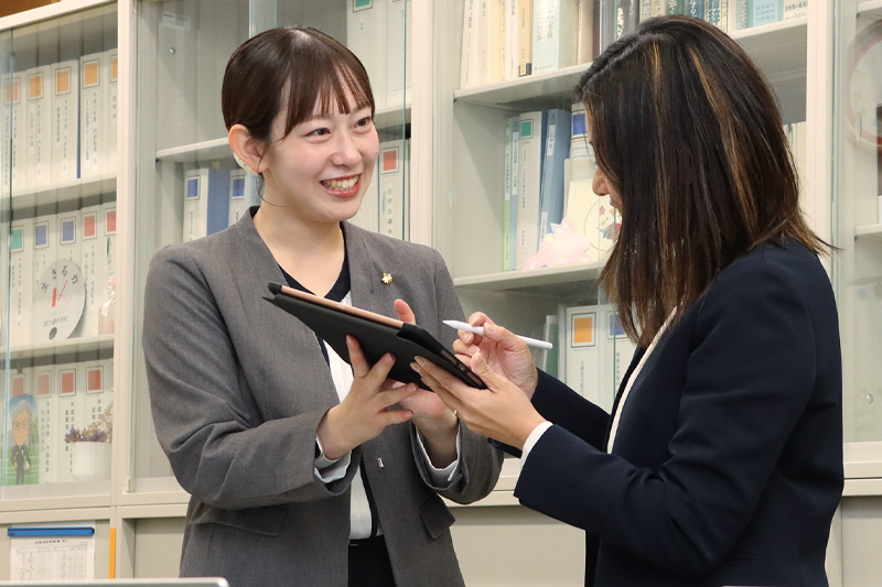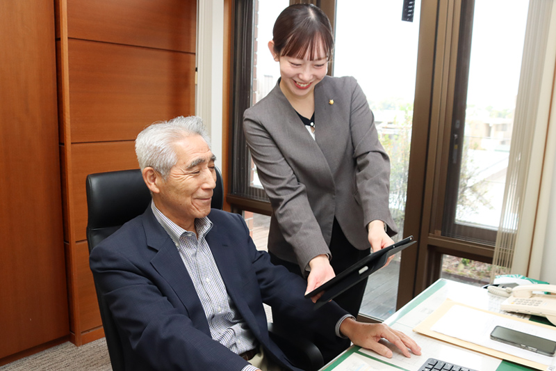 役員をはじめ先輩方も皆さん穏やかで、とても話しやすい雰囲気です。秘書業務は、理事長や理事のお客さまを最初にお迎えする役割があるため、“いつでも笑顔で対応すること”を心がけています。