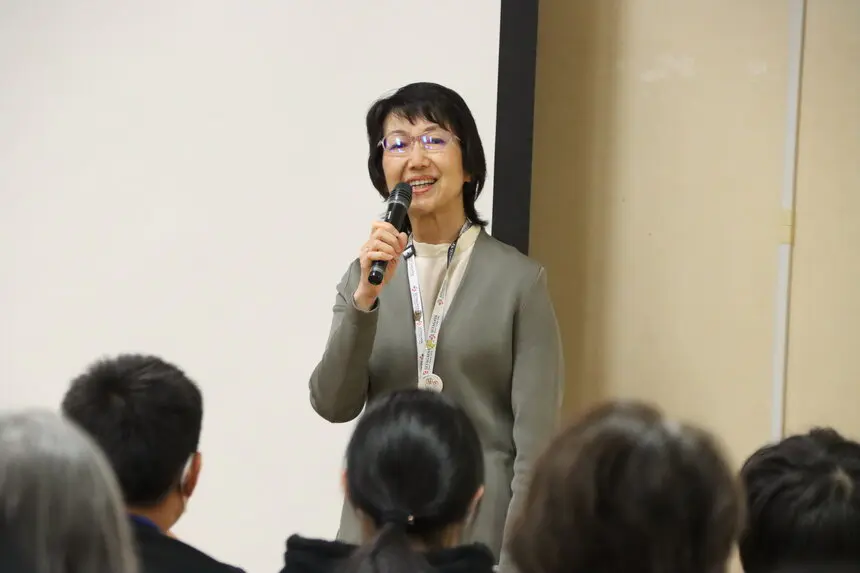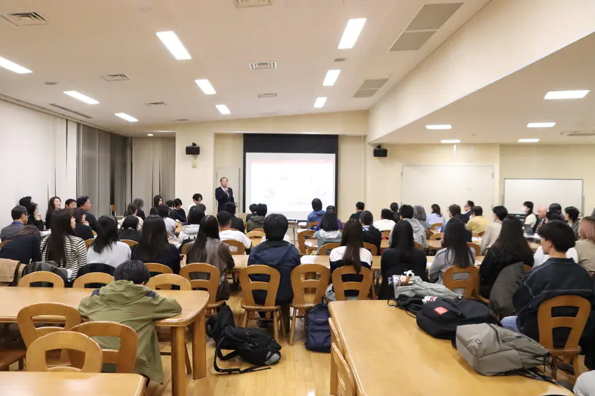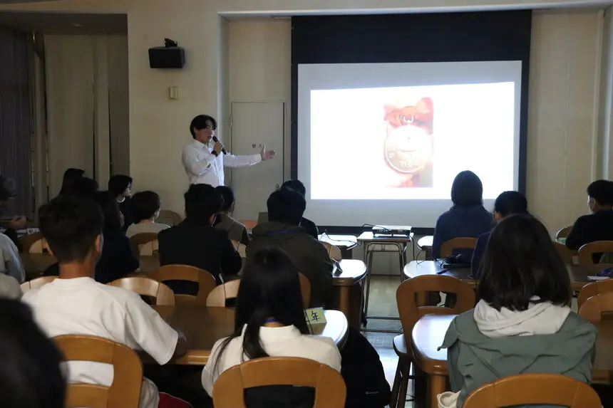 10月29日、梅丘中学校内にある帰国・外国人教育相談室主催で「国士舘大学留学生によるキャリア・プレゼンテーション」が行われました。本行事は、本学の外国人留学生が自身の経験を語り、参加者に将来のキャリアや外国での生活について考えるきっかけを提供する目的で開催し、通級指導などに通う中学生約20人が参加しました。大学院生を含む3人の留学生が、自身の留学経験、困難、そしてそこから得た学びについて発表しました。