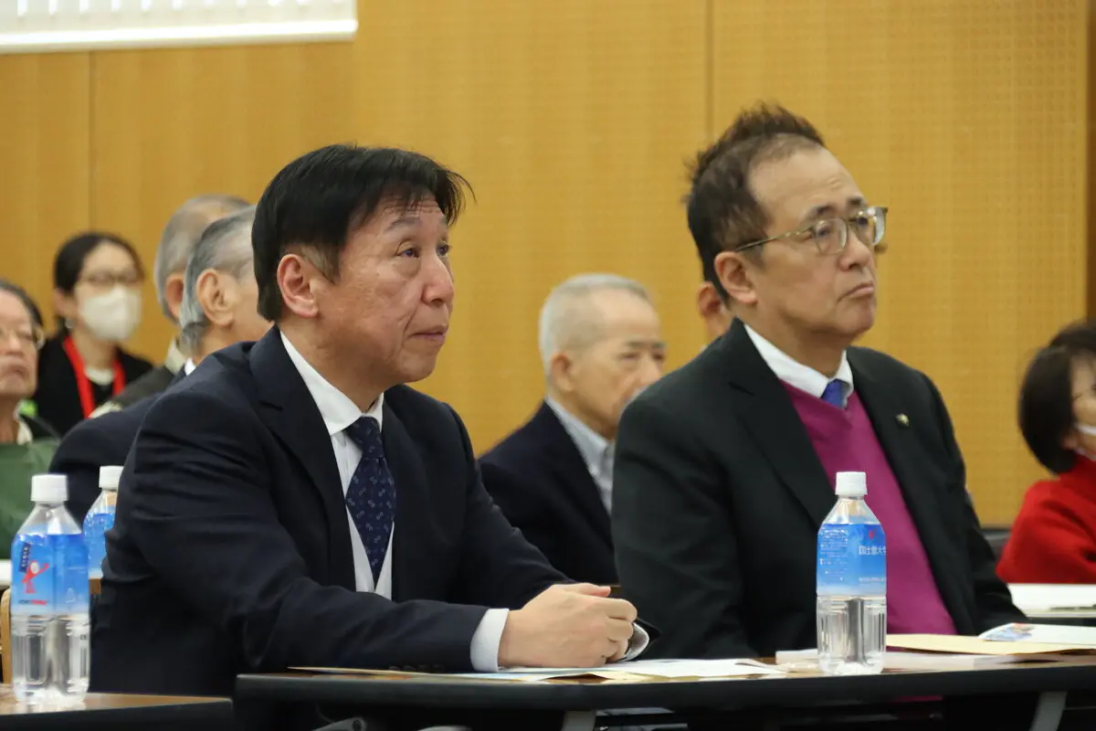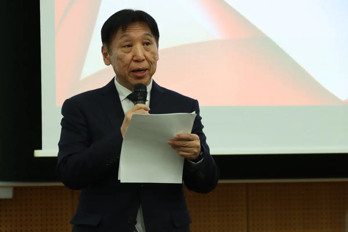 はじめに保坂展人世田谷区長があいさつを述べ、12年にわたる区と大学の連携実績に触れ、「人口過密都市において、大規模災害時の打撃は計り知れない。学生たちの防災を軸とした提言を、区の政策や地域活動に反映させ、都市の修復力を高めていきたい」と述べました。続いて、村上純一副学長があいさつに立ち、本学の建学の精神や四徳目について触れながら、「誠実に他者と向き合い、勇気をもって行動する人材が、地域の未来を描く対話の場には不可欠である」と述べました。