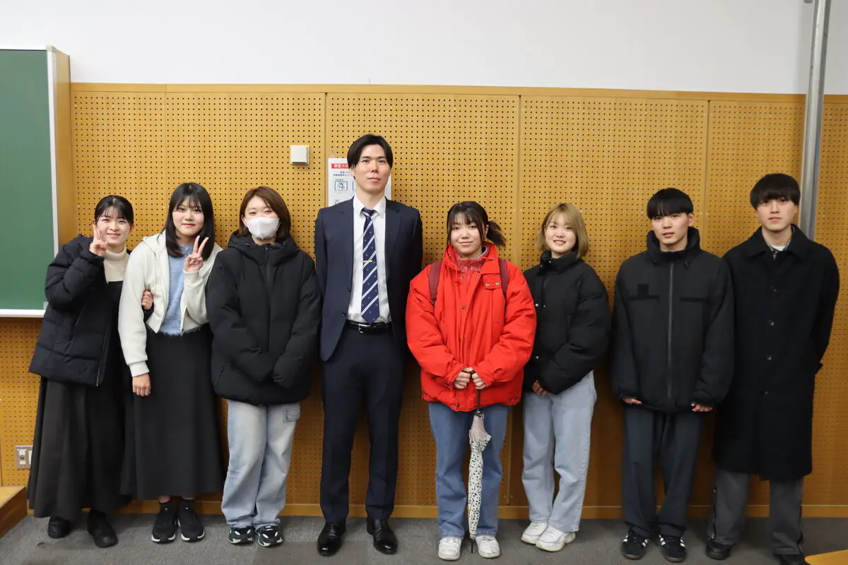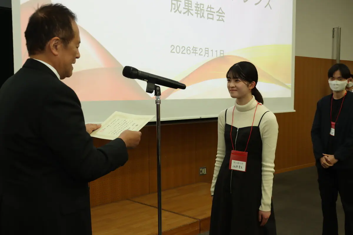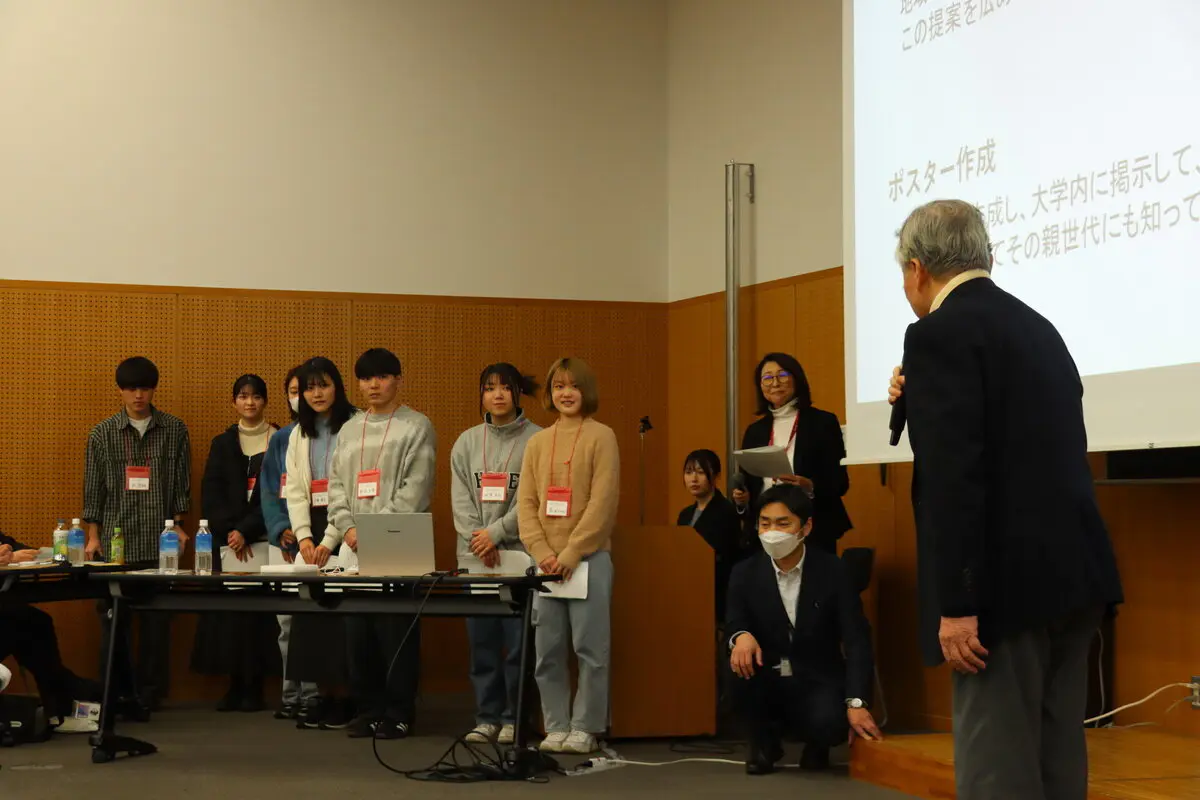 講評では法学部の飯田森助教と宍倉教授らが代表してあいさつを述べました。飯田助教は「この活動で得た知識や経験を自分の地元の住民として、それぞれの地域に還元してほしい」と述べ、宍倉教授は「学生が地域に入り、大学を通じて客観的に分析することで、地域の魅力や課題が『可視化』されることに大きな意義がある」と成果を語り発表会を締めくくりました。