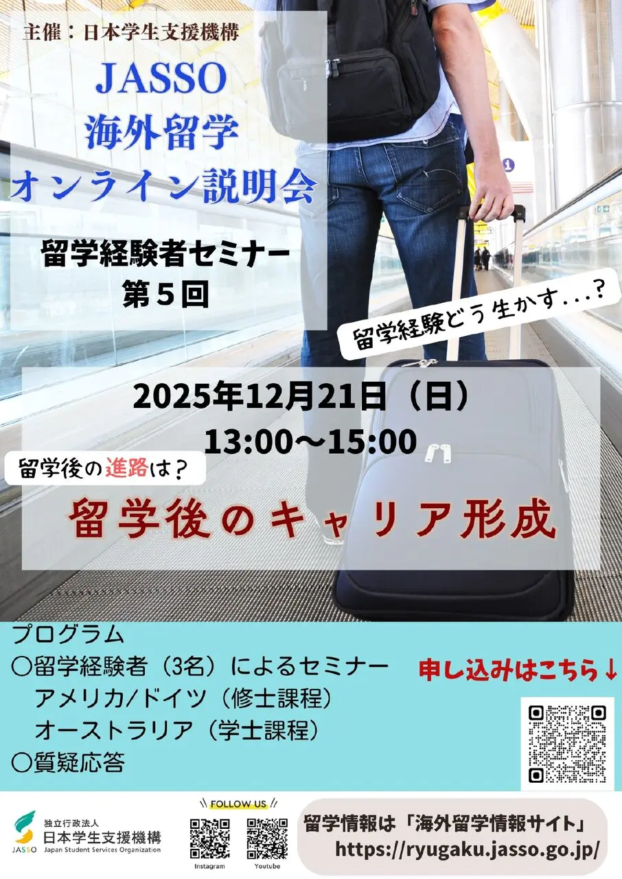日本学生支援機構では、海外留学希望者を対象とした下記海外留学イベントを実施いたします。