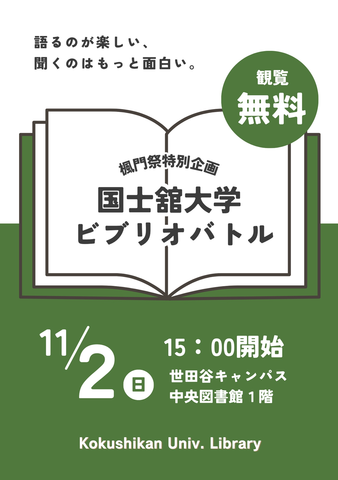 図書館では、楓門祭にあわせて「ビブリオバトル(知的書評合戦)」を開催します。