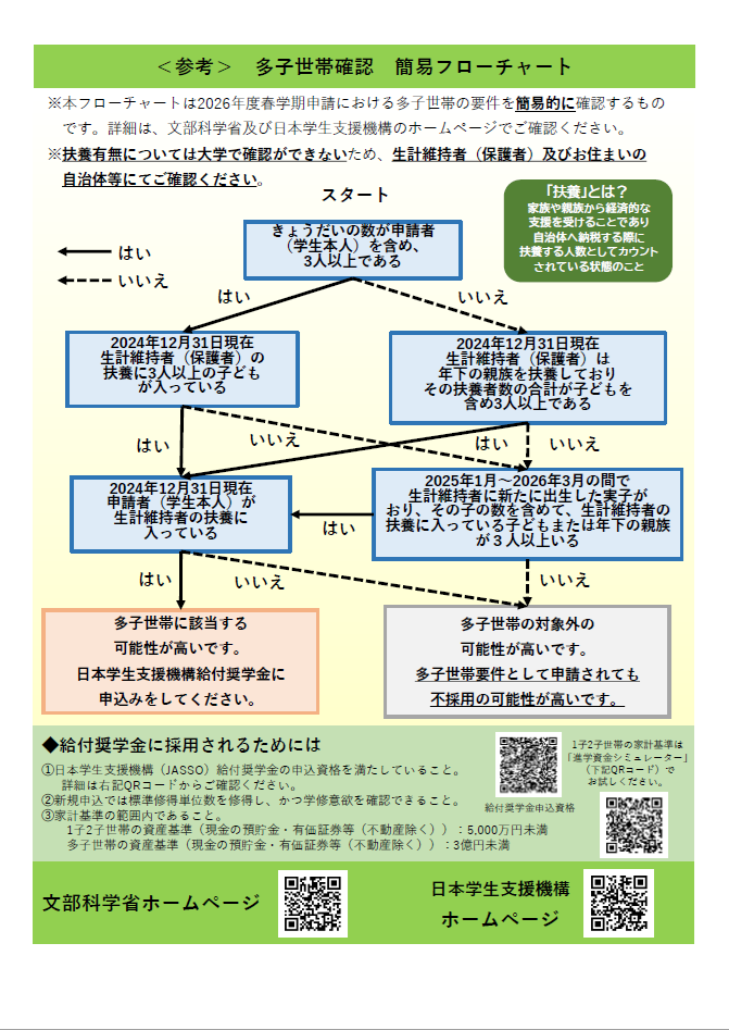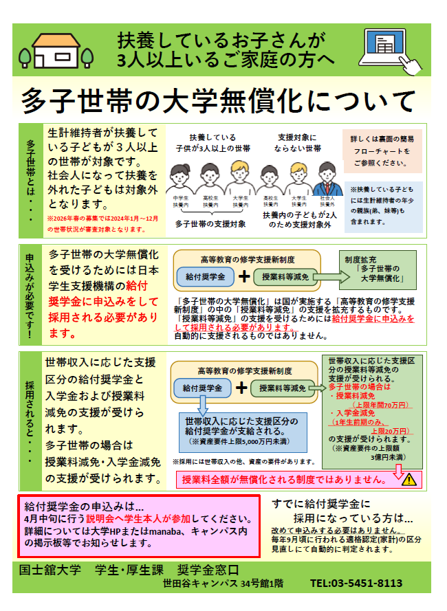 令和7年度から始まった多子世帯の大学無償化の支援を受けるためには、給付奨学金に申込みを