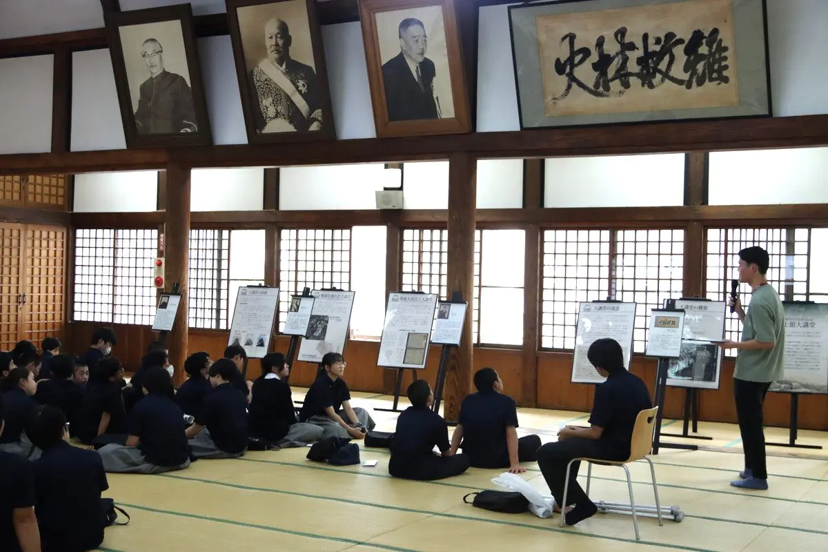 10月8日、国士舘中学校1年生を対象に自校史教育「国士舘を学ぶ」が行われました。本行事は、本学園の建学の精神や教育理念を理解し、日頃の学習への理解を深めることを目的として行われ、国士舘史資料室が担当しています。