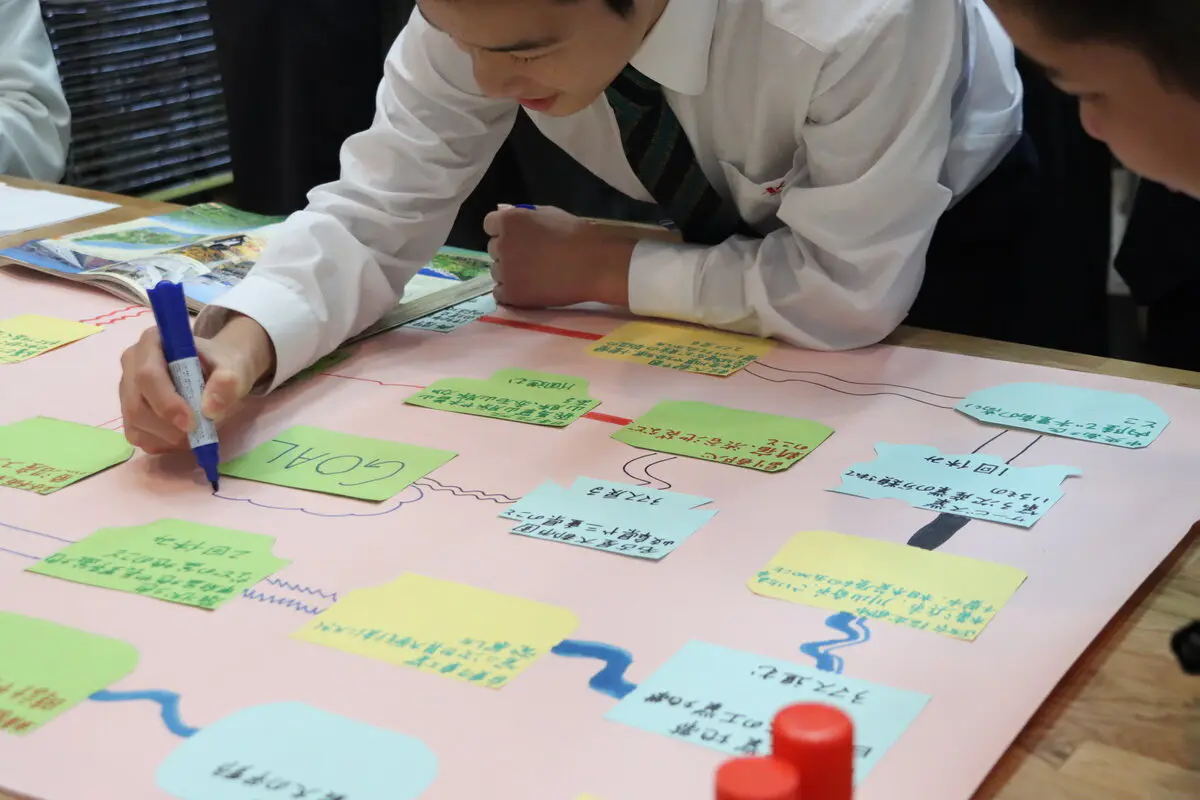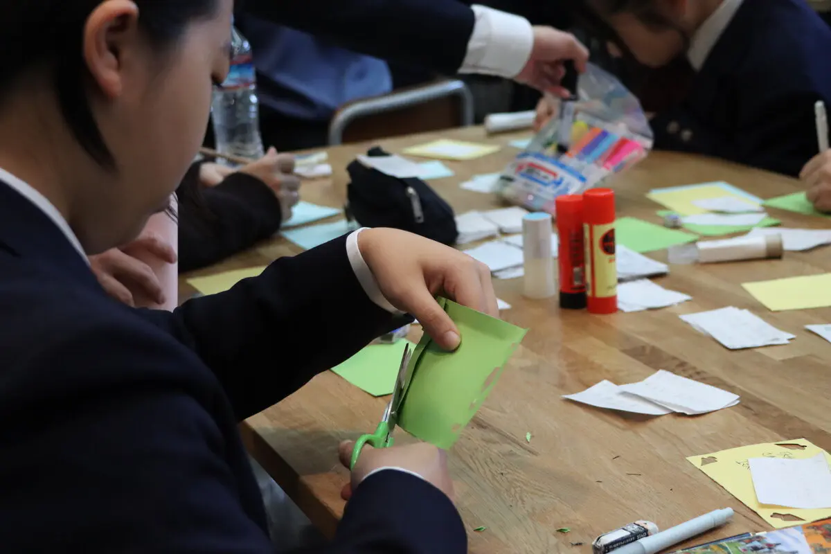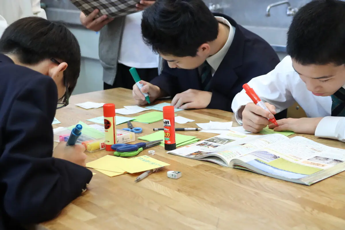 10月25日、政経学部の石見豊ゼミ、隠岐-須賀麻衣ゼミ、織田健志ゼミ、鈴木智行ゼミの学生らが国士舘中学校2年生の生徒らに、「すごろくづくり」の体験授業を実施しました。授業で学んだ地理・歴史分野の内容をグループごとにまとめ、それらの情報を生かし、すごろくを作成しました。授業で学ぶだけでなく、それらを実践的に生かすことで興味関心を高めるとともに、政経学部の学びを知り進路の視野を広げることなどを目的として実施しました。