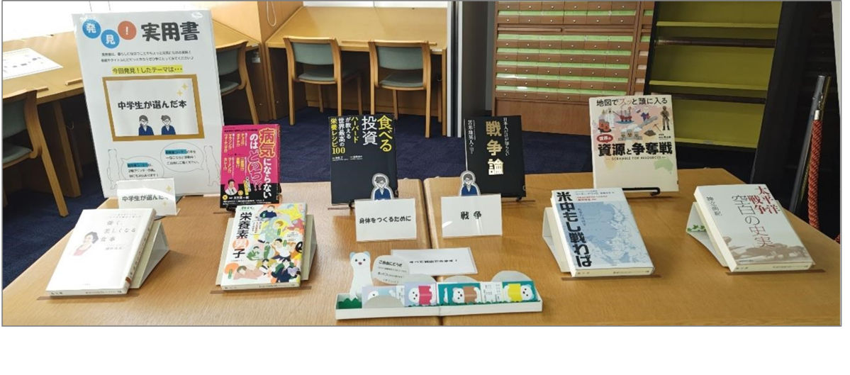 図書館の職場体験では、館内の見学を行った後、本・雑誌の配架作業や貸出、返却本の手続きを行う受付業務、新着図書の検品やデータを貼り付ける目録作業など幅広く体験しました。また、展示図書のテーマに合った本を生徒自身が選定した後、本のイメージに合ったPOP制作も行いました。