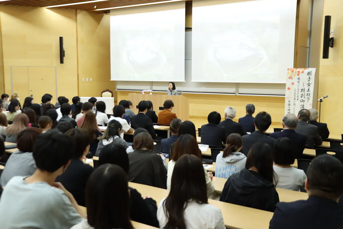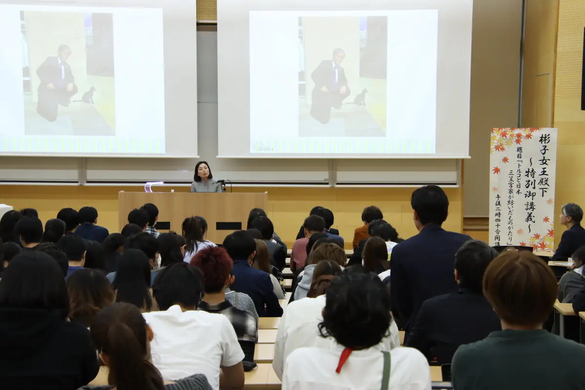 本学人文科学研究科客員教授の彬子女王殿下による特別講義が10月9日、世田谷キャンパスのメイプルセンチュリーホール大教室で行われ、彬子女王殿下は人文科学研究科および文学部の学生らと教職員約200人に「トルコと日本~三笠宮家が紡いだものがたり」と題してご講義をなさいました。