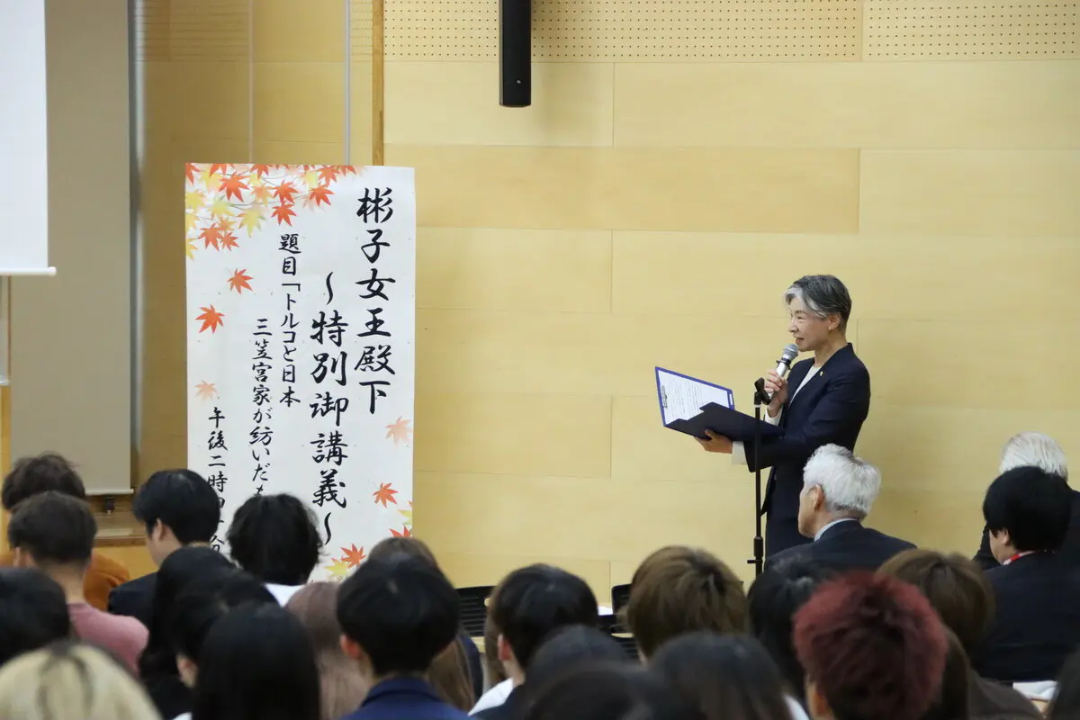 最後に、彬子女王殿下は、日本とトルコとの歴史的な交流の始まりとされるエルトゥールル号遭難事件などの歴史的背景に触れながら、「両国には支援しあう友好的な交流の深い歴史がある。これらの思いを継承しながら、三笠宮家三代の絆を守り、日本とトルコの友好の懸け橋となれるよう努めていきたい」とご講義を締めくくられました。
