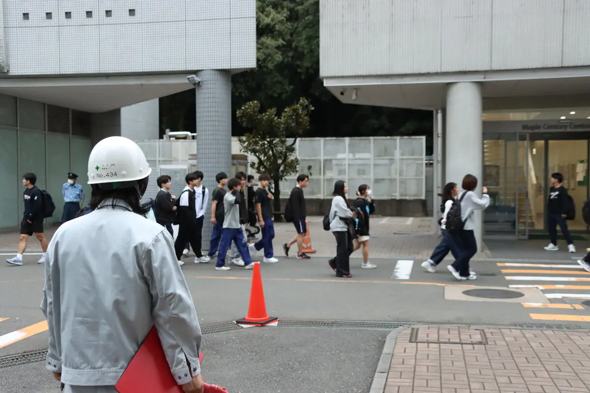 また、教員は学生への避難指示、職員は各建物での逃げ遅れの確認や避難誘導を行いました。