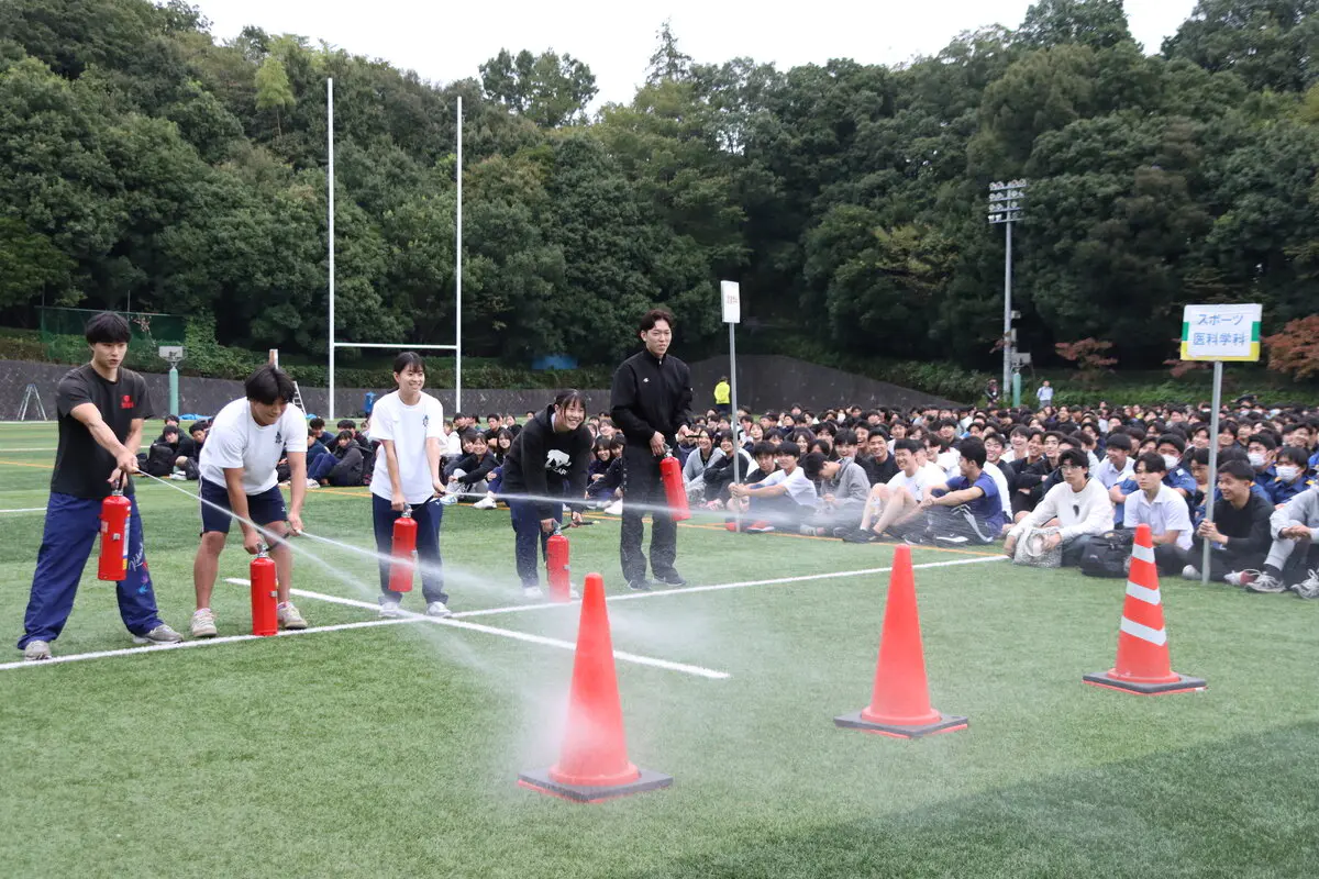最後に、古田仁志体育学部長が「協力して行動し、迅速に避難していたことは素晴らしかった。訓練を通じて、災害時の迅速な対応と安全確保について再認識できたのではないか」と所感を述べ、「防災を学園全体の取り組みとして捉える文化を育み、教育機関として学生の安全確保はもちろんのこと、社会に防災意識を発信する役割を果たしていかなければならない」と総評し、訓練が終了しました。