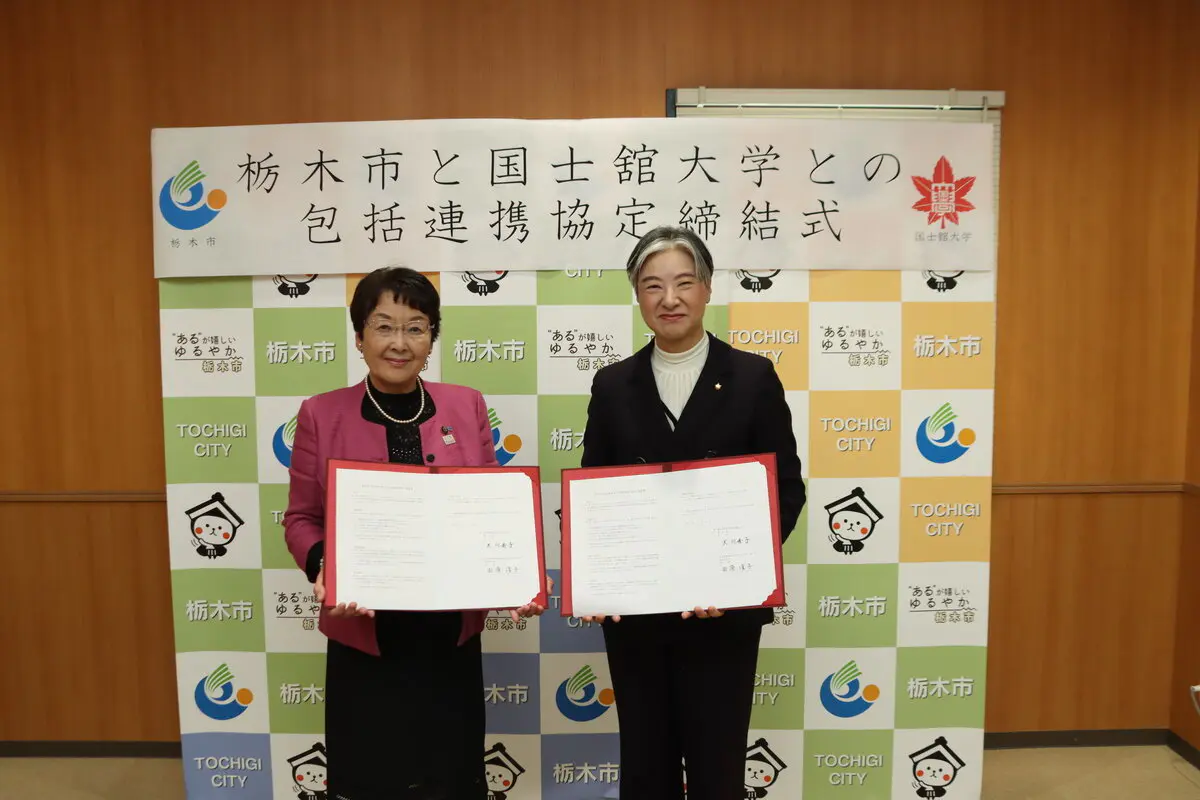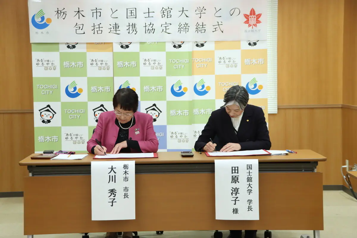 本学と栃木市は11月18日、地域社会の形成および学術の発展や人材育成に寄与することを目的とした包括連携協定を締結しました。主な内容は、地域振興及びまちづくりの推進、デジタルデータを活用した業務や行政サービスの向上、人材育成、学術研究、学校教育、スポーツ・文化の振興で、連携・協力を強化することで地域社会の持続的な発展に資する事業を協働で取り組むこととしています。