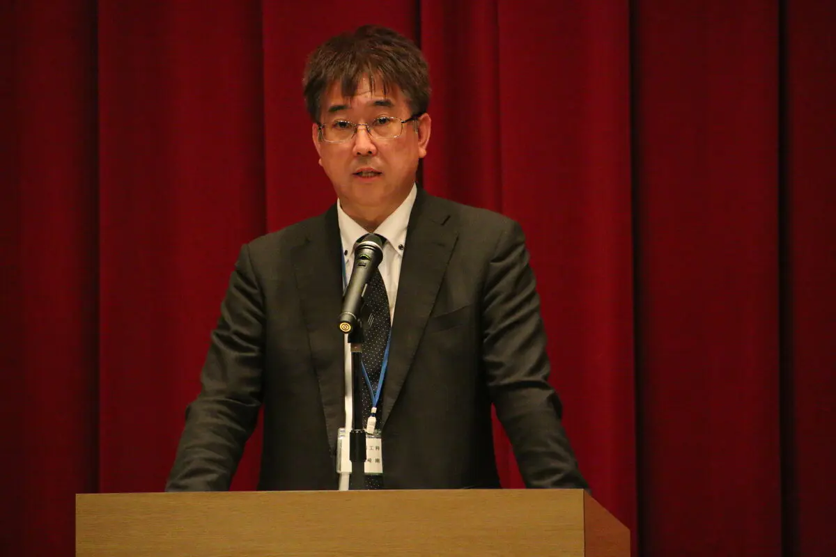 初めに本協議会会長で神奈川工科大学の宮崎剛氏が登壇し、「皆様と共に生連協創立60周年を祝えることを喜ばしく思う。関係各位、そして会場をご提供いただいた国士舘大学に深く感謝申し上げる」と謝辞を述べた後、生連協の歴史に触れながら、創設当時と比較して、「学生の課題は多様化しているが大学の枠を超えた横のつながりはますます重要になっており、さらなる学生支援の充実に努めたい、また長年この協議会を支えている関係各位に敬意と感謝を述べ、この協議会が対話と連携の場になるよう取り組みたい」と開会のあいさつを述べました。