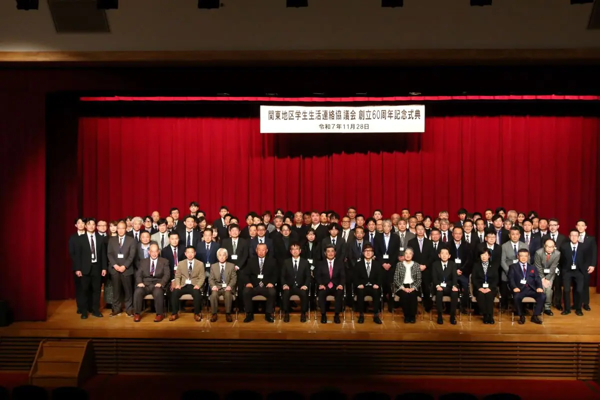 11月28日、世田谷キャンパス中央図書館多目的ホールで、関東地区学生生活連絡協議会創立60周年記念式典・記念講演会が開催され、32大学から104人が参加しました。