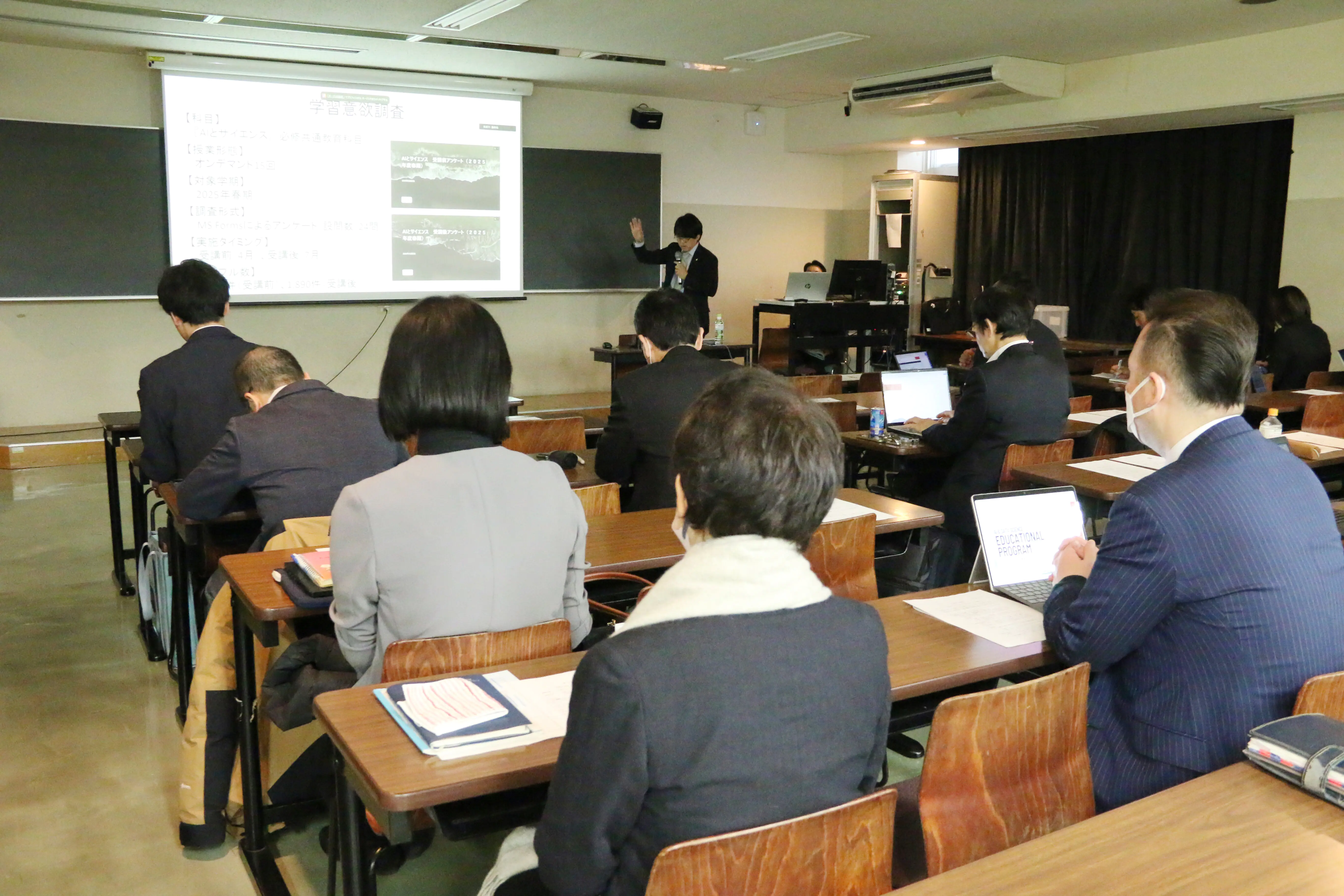 第12回FD研修会が12月6日、世田谷キャンパス10212教室にて開催されました。本研修は「教育DX時代におけるAIの現在地―学生意識と基礎リテラシーを考えるー」をテーマに、対面とZoomによるハイブリッド型で実施。多数の教職員・関係者が参加し、AI活用をめぐる現状と課題について学びました。