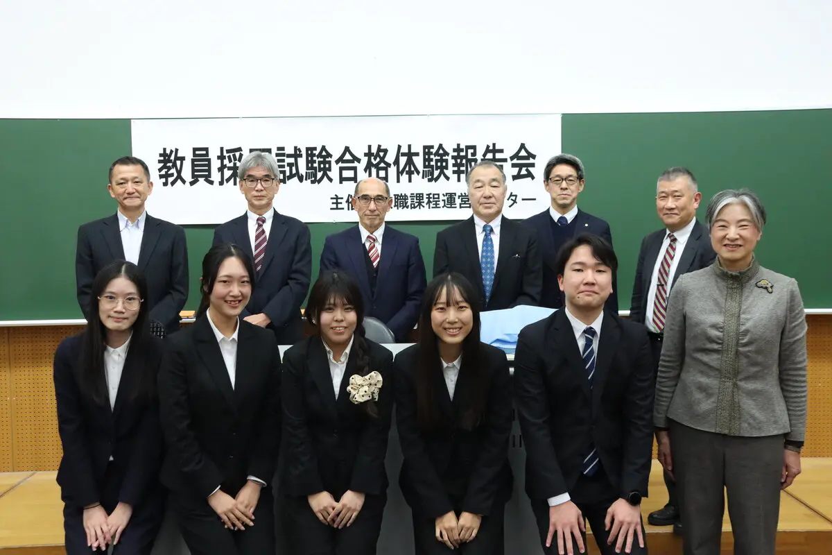 発表者からは、「児童・生徒に寄り添える先生を目指していきたい」「受かってゴールではなく、ここからがスタートだと思い、一歩一歩努力を重ねていきたい」などと、来年度からの教員生活に夢と希望を膨らませました。