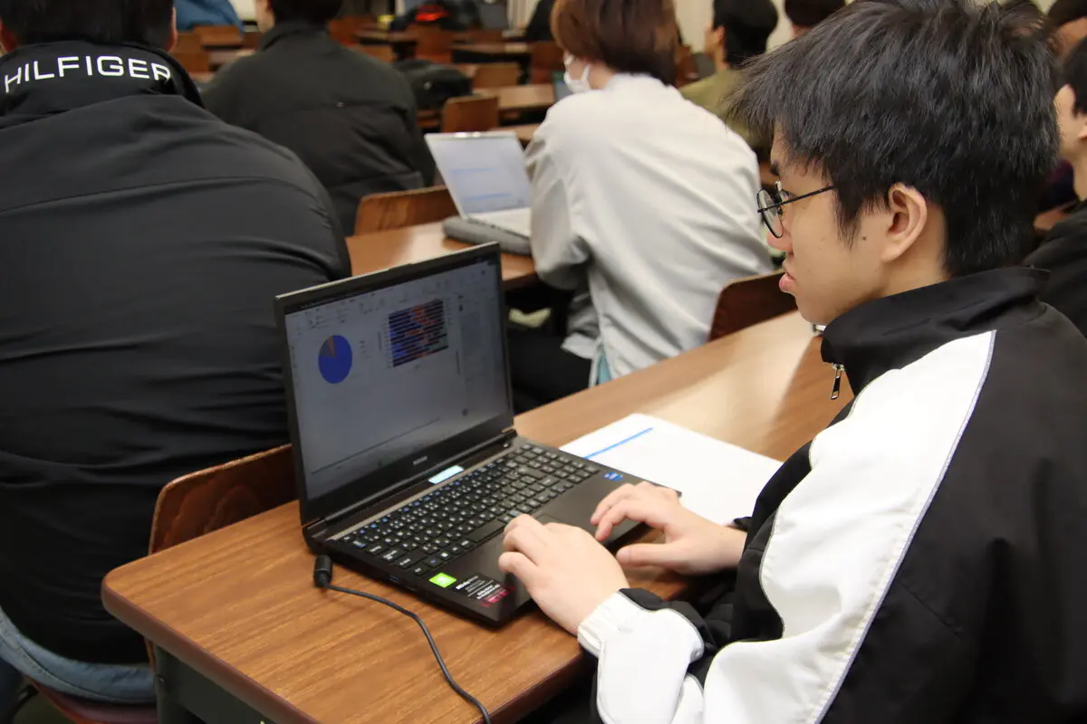 12月22日、全学共通教育科目「AI基礎演習」において、外部講師を招いた特別講義が実施されました。今回は、ワークスアイディ株式会社の金村涼平氏を講師に招き、データの可視化について基礎から実践まで深く学ぶ内容となり、学生たちはAI技術の活用方法を体感しました。