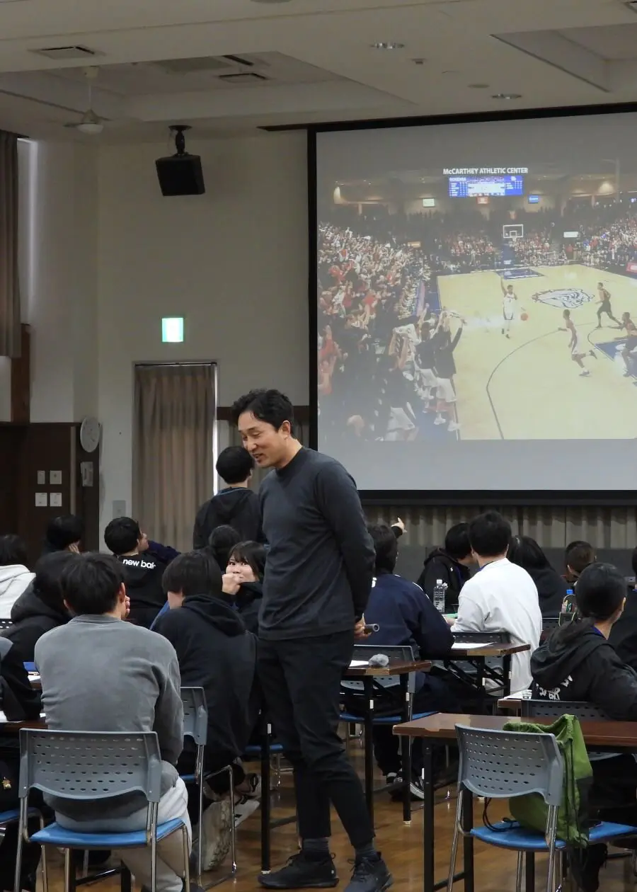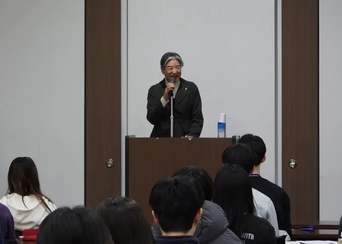 座学では、はじめに、田原淳子学長による「人を活かし、人に活かされる」をテーマとした講話が行われ、チーム作りやリーダーとしての在り方などに対する知識を深めました。続いて、体育学部の武井幸二学生部長による「武道の精神を組織力(チーム力)強化に生かす」、経営学部の池元有一学生副部長による「リーダーシップ論」、体育学部の秋葉茂季准教授による「個性を活かしたリーダーシップ」をテーマとした講演が行われ、さまざまな観点からのリーダー論を学びました。