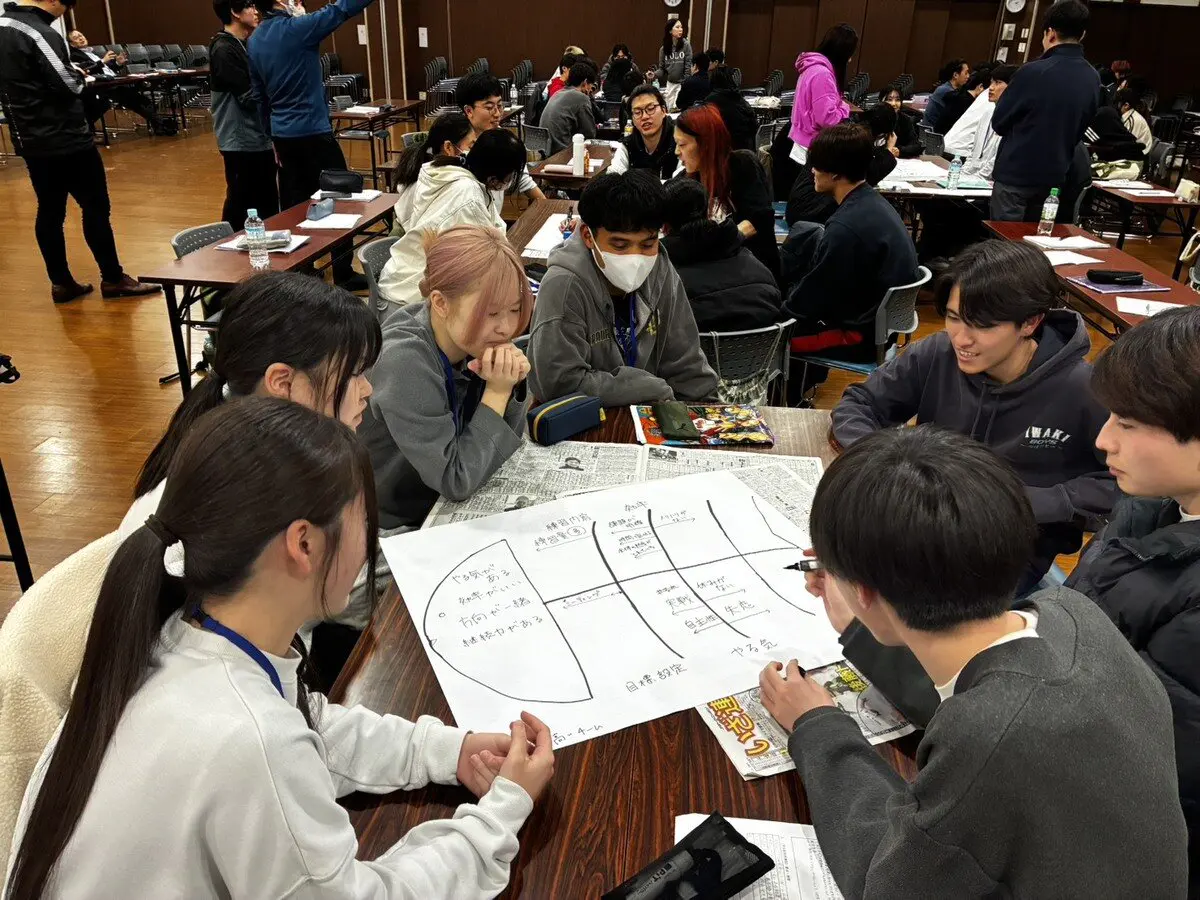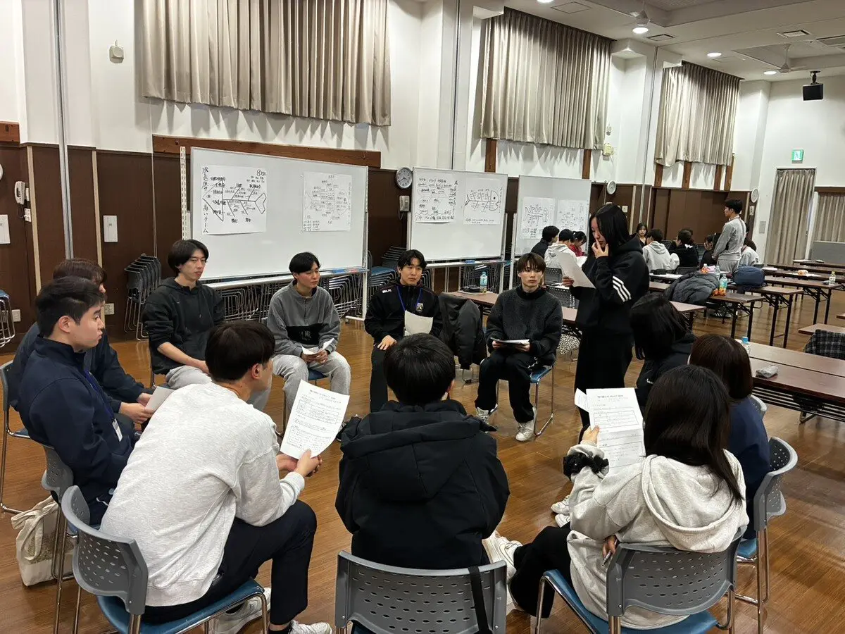 班別学習では、各6~8人ごとの12班に分かれ、「成長度の高いチーム」をテーマとし、そのチームを作るために必要な要素や具体的な実践方法について議論し合った後、全体で発表を行いました。また、実技活動では、フラフープ協力リレーやジェスチャーゲーム、人間ビンゴなどを行い、学生同士の交流の輪を広げるとともに、新たなチームのリーダーとしての在り方などについて学びを深める3日間となりました。