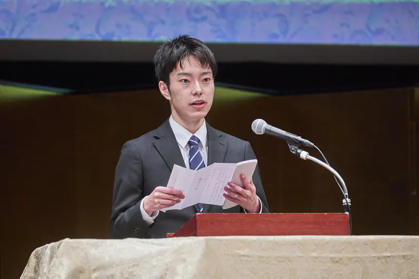 在学生代表歓迎の辞では、それぞれ新入生に対し、自身の大学生活を振り返りながら激励の言葉を贈りました。