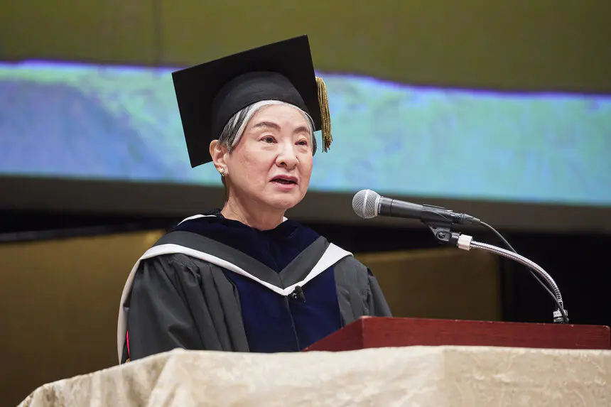 国歌斉唱の後、田原淳子学長は式辞で、国士舘創立の時代背景を踏まえながら「国士」養成を目的とする本学の建学の精神と教育理念の四徳目「誠意・勤労・見識・気魄」を説明しました。そして、創立者の柴田德次郎が国士舘に入学した学生に伝えていた4つの感謝「人間に生まれたことへの感謝」「日本に生まれたこと(日本で学べること)への感謝」「恵まれた家庭に生まれ、育ててもらったことへの感謝」「国士舘大学に入学したことへの感謝」を紹介し、「皆さんは多様なステークホルダーと共に歩む、国士舘大学という力強いコミュニティの一員になった。夢中になって打ち込めるものを見つけ、長所や取り柄を再発見し、その才能を社会で役立てられるように大きく伸ばしてほしい」と語りかけました。