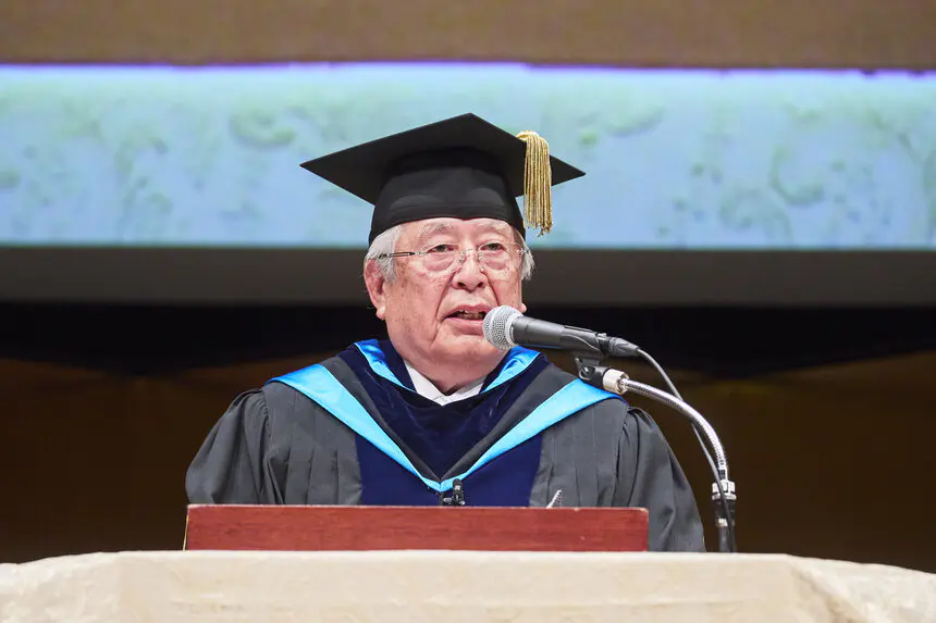 瀬野隆理事長は祝辞で、国士舘が進める第3次中長期事業計画の柱となる、次世代に向けたキャンパス環境整備事業について紹介しました。同事業は最先端の教育研究と幅広い資格取得の機会を作り出すプロジェクトだとし、「国士舘でしか得ることができない教育研究の機会を貪欲に活用し、目標を達成してほしい。皆さんが、心身を鍛えて、国を思い、社会を支え、人を救うことのできる、強くたくましい人材となることが、教えを受け継いできた我々の願いであり、叶えてほしい夢である」と激励の言葉を述べました。