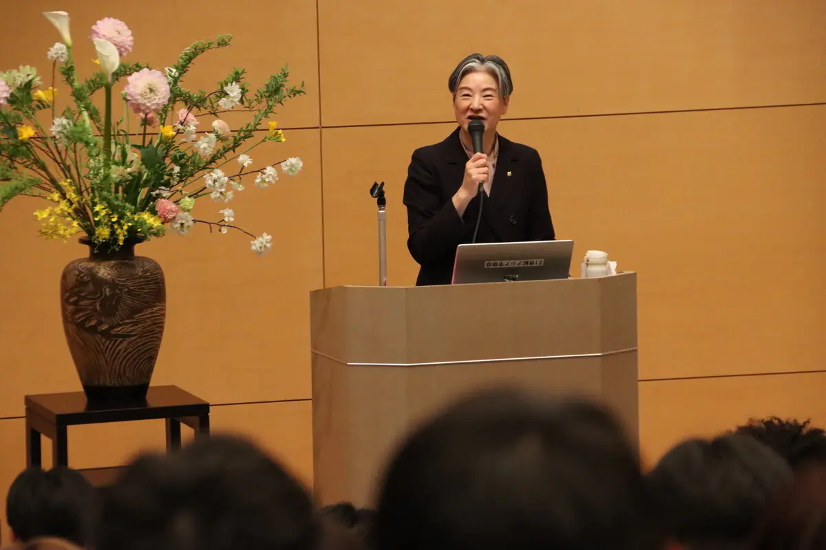最後は、各キャンパスの施設や教育体制を紹介し、学部を超えた学びの重要性を説くとともに、柴田が米国や欧州諸国に渡り国際的な見聞を広めたエピソードを取り上げ、「学生生活の中では、海外に出向くことはもちろん、視野を広げて多くのことに挑戦してほしい」と、新入生の学生生活がより充実したものとなるよう願う言葉で講話を締めくくりました。