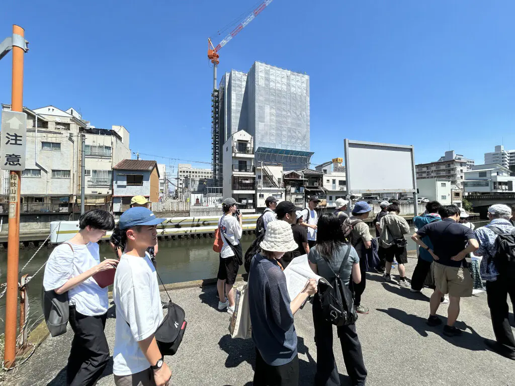 建築を学ぶ学生らが大学の枠を超えて学び、新たなまちづくりを提案しようと2021年に始まったワークショップも今年で4年目。今回は「木と水のまちづくり」をテーマに和歌山市のまちづくりと提案を行います。学生らは、最初のミーティングとして他大学の学生と一緒に現地調査や勉強会に参加しました。また、その様子が地元紙わかやま新報で紹介されました。