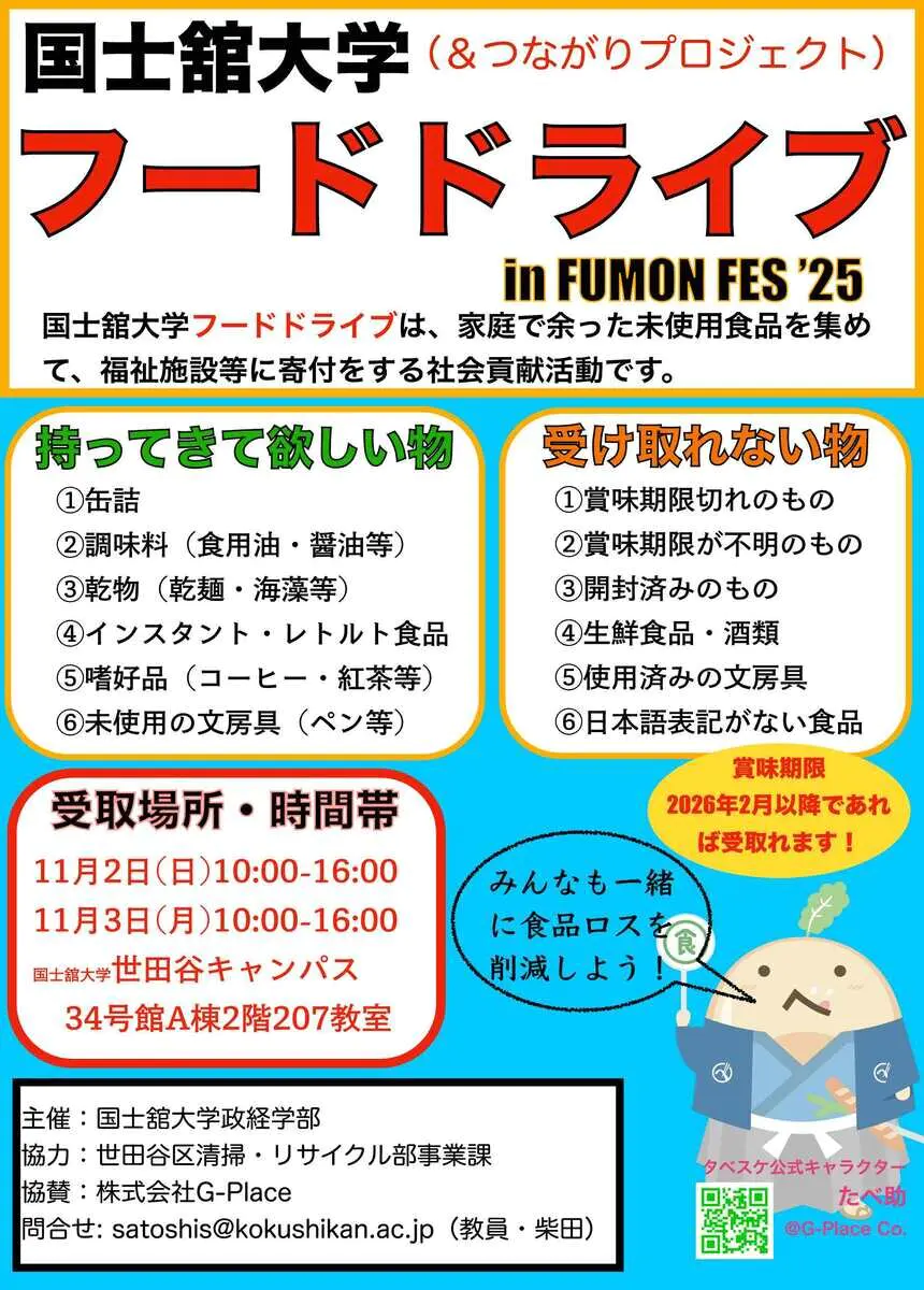 政経学部では、今年度の楓門祭において4度目のフードドライブを実施します。ご家庭で余っている未使用食品や文房具を持ち寄り、地域の子ども食堂や福祉施設に届ける社会貢献活動です。詳細(回収品目・日時・場所など)は、以下のチラシをご覧ください。