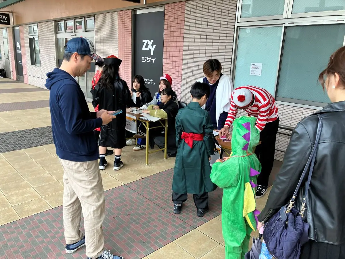 また、ゼミ生たちはトリックオアトリート時の会場の整備やイベント参加店舗へのお菓子の配布、設営や後片付けなど、イベント全体の運営にも関わりました。