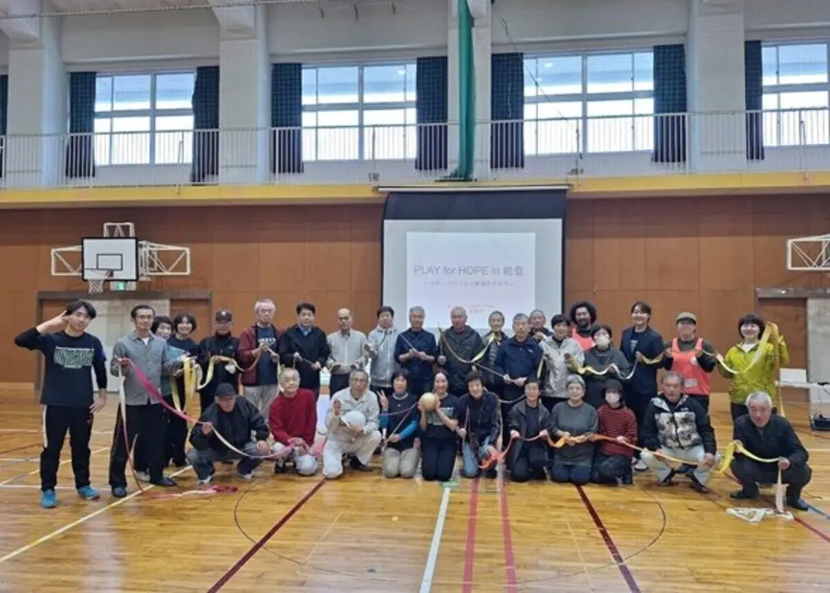 10月26日(日)、能登半島地震の被災地域である石川県七尾市和倉小学校にて、「PLAY for HOPE in 能登」が開催されました。和倉地区の避難訓練に参加した高齢者33人を対象に、学生2人(男女各1人)が講師として登壇し、講演・ワークショップ・新体操デモンストレーションを行いました。新体操世界選手権団体金メダリストの稲木李菜子さん(4年生)は、「笑顔と勇気の力」をテーマに講演を実施。リボンやボールを使った運動体験を通して、スポーツの楽しさと防災意識を融合させた新しい形の教育活動を展開しました。会場では「久しぶりに体を動かして楽しかった」「学生の笑顔に元気をもらった」といった声が多く寄せられました。本企画は民間災害ボランティアセンター「おらっちゃ七尾」との協働で実施され、北國新聞(10月27日掲載)でも取り上げられました。
