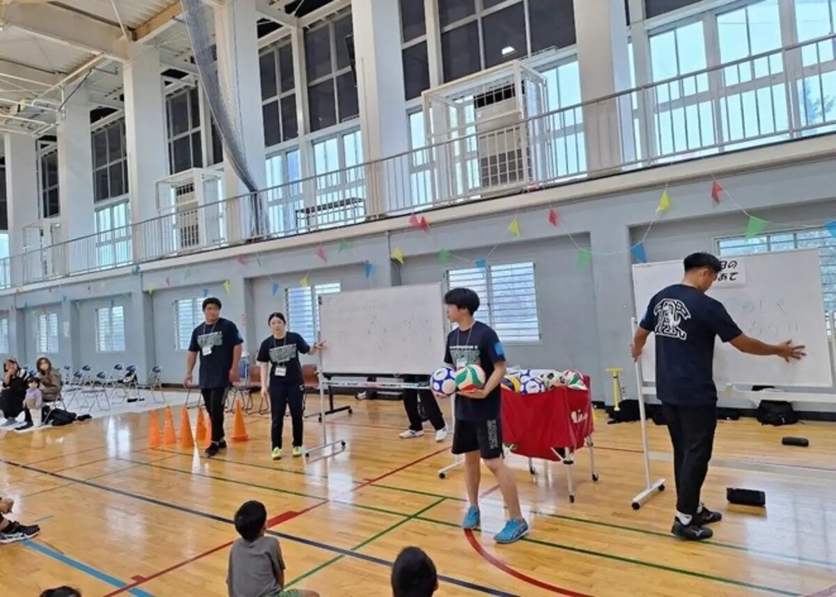 10月20日(月)、岩手県遠野市立上郷小学校にて地元出身の菊田ひかるさん(4年生)を中心に、「安全に」「協力する」ことをテーマとしたサッカーワークや、RICE 処置(休息・冷却・圧迫・挙上)およびバンテージ体験を交えたワークショップを実施しました。児童たちからは、「大学生が教えてくれてうれしかった」「けがをしたときにどうすればよいかわかった」などの声が寄せられ、スポーツの楽しさや安全に行動することの大切さを体験的に学びました。